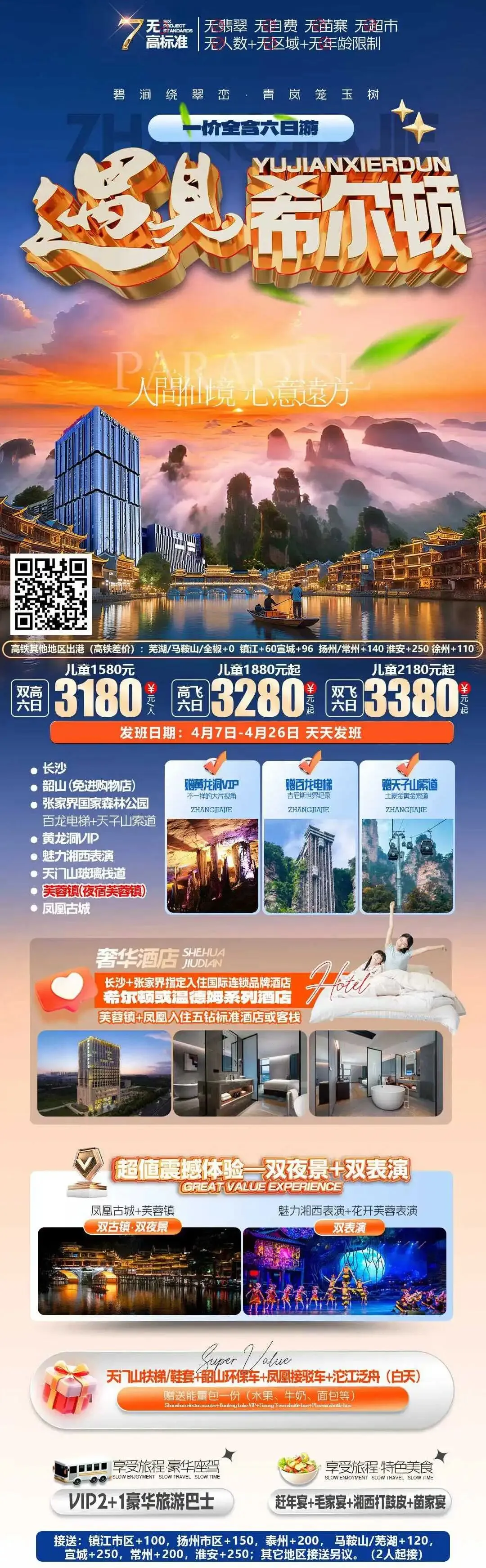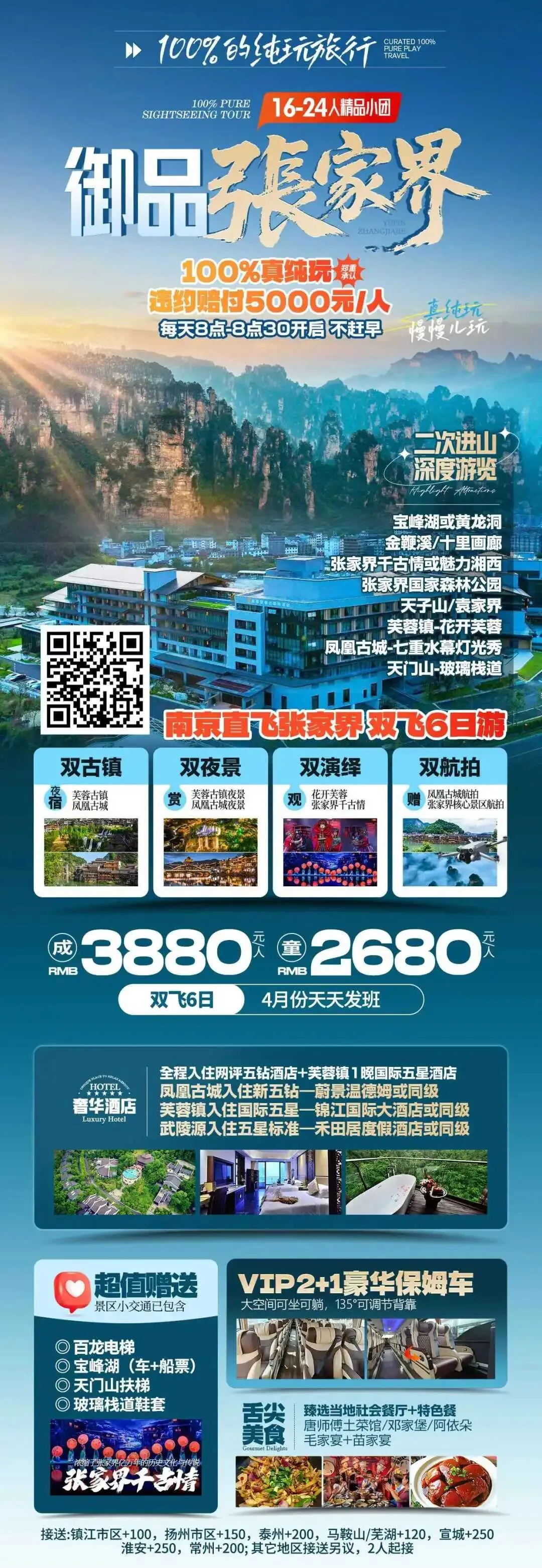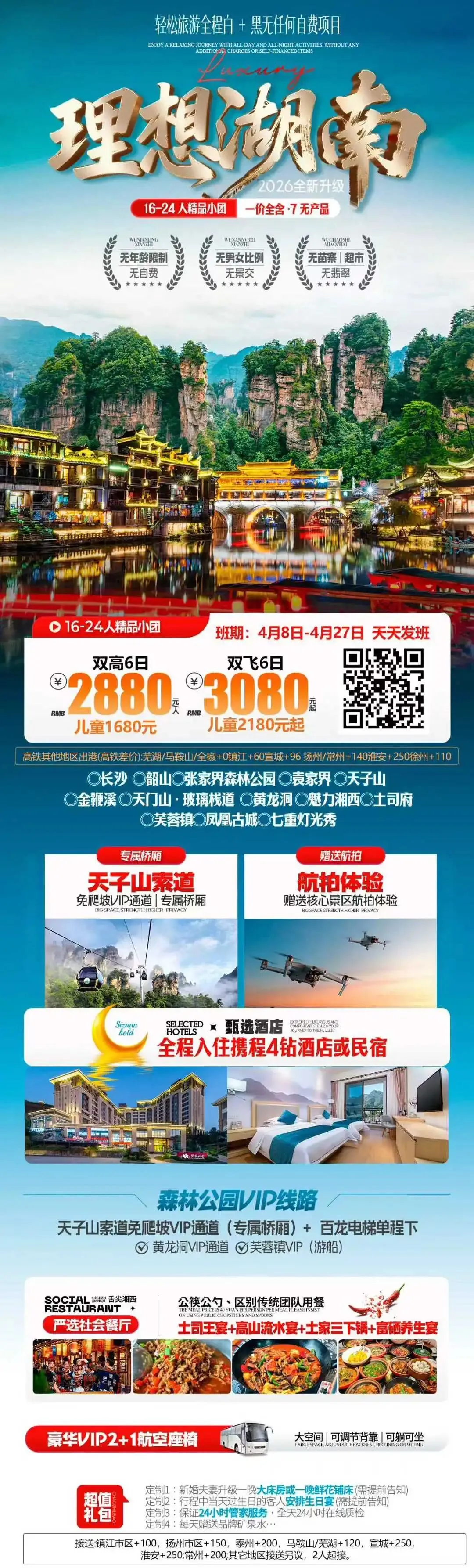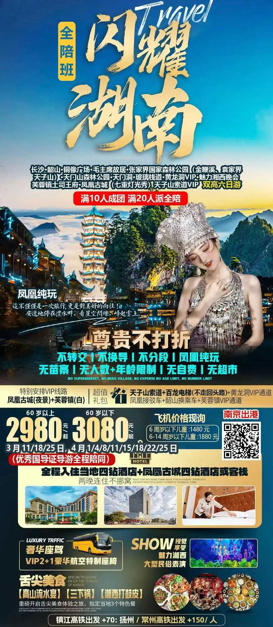 【错峰湘西】湖南长沙韶山 张家界 国家森林公园 袁家界 天子山 金鞭溪 天门山 凤凰古城 芙蓉镇