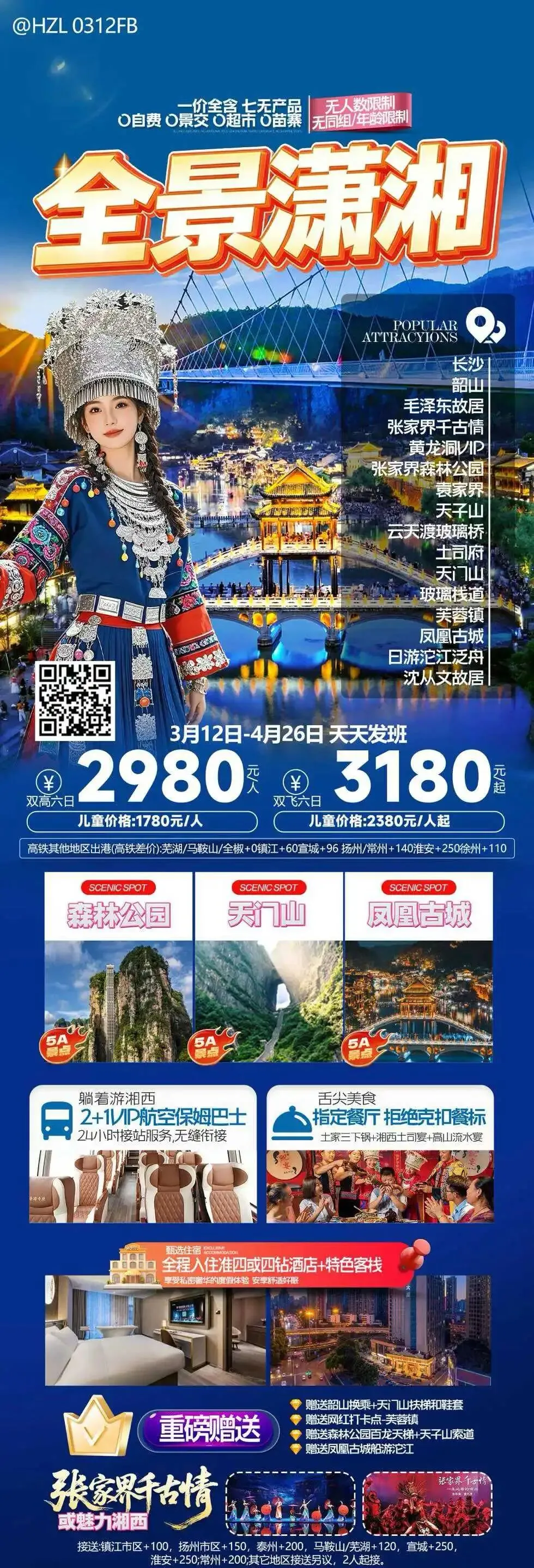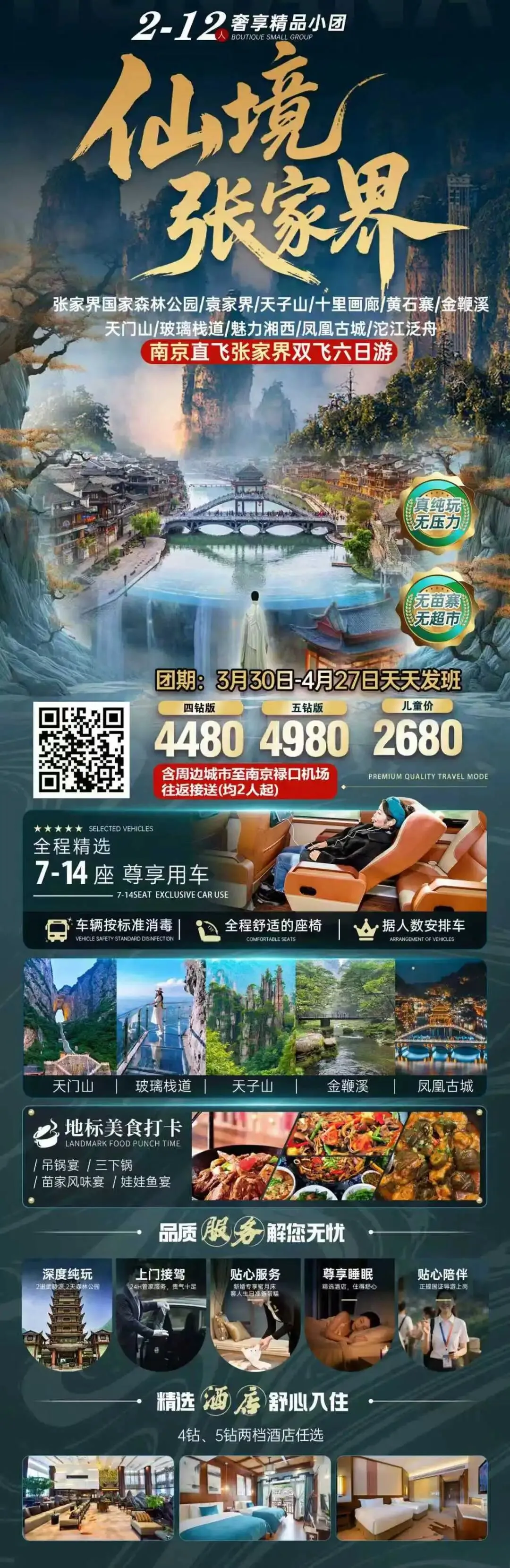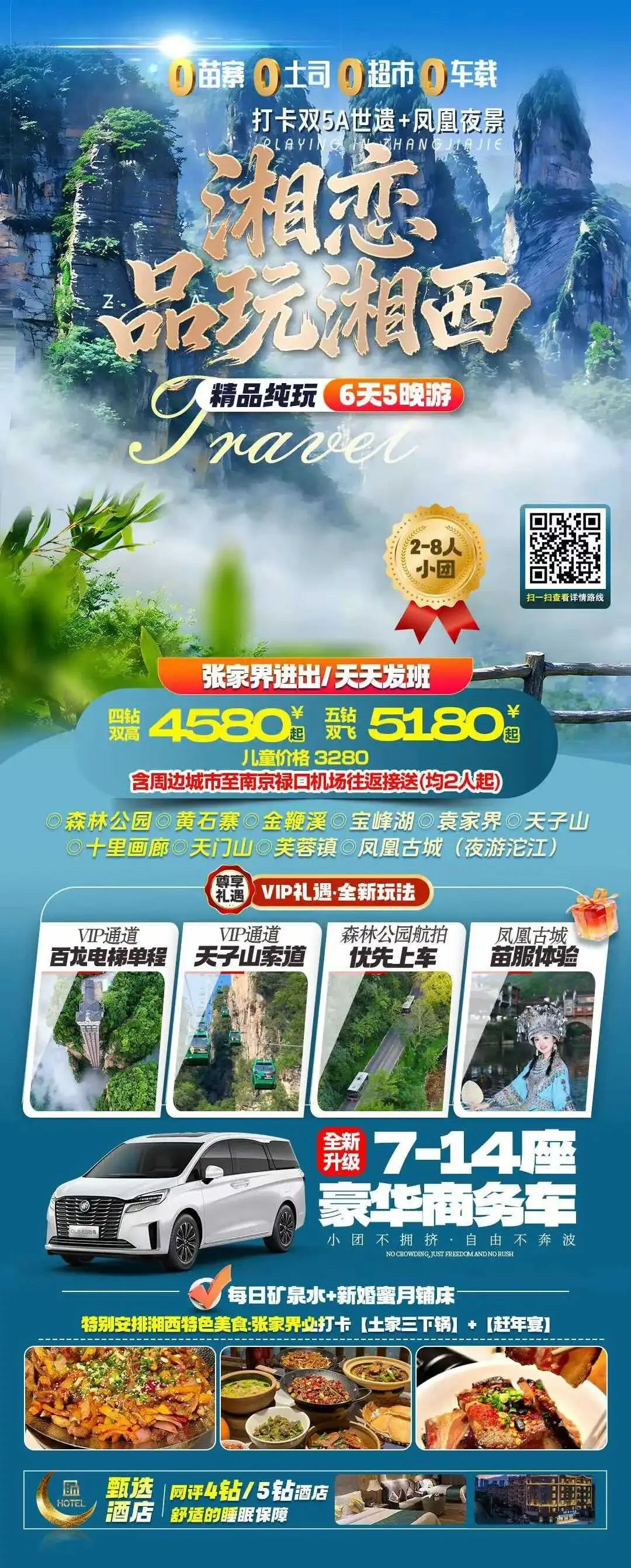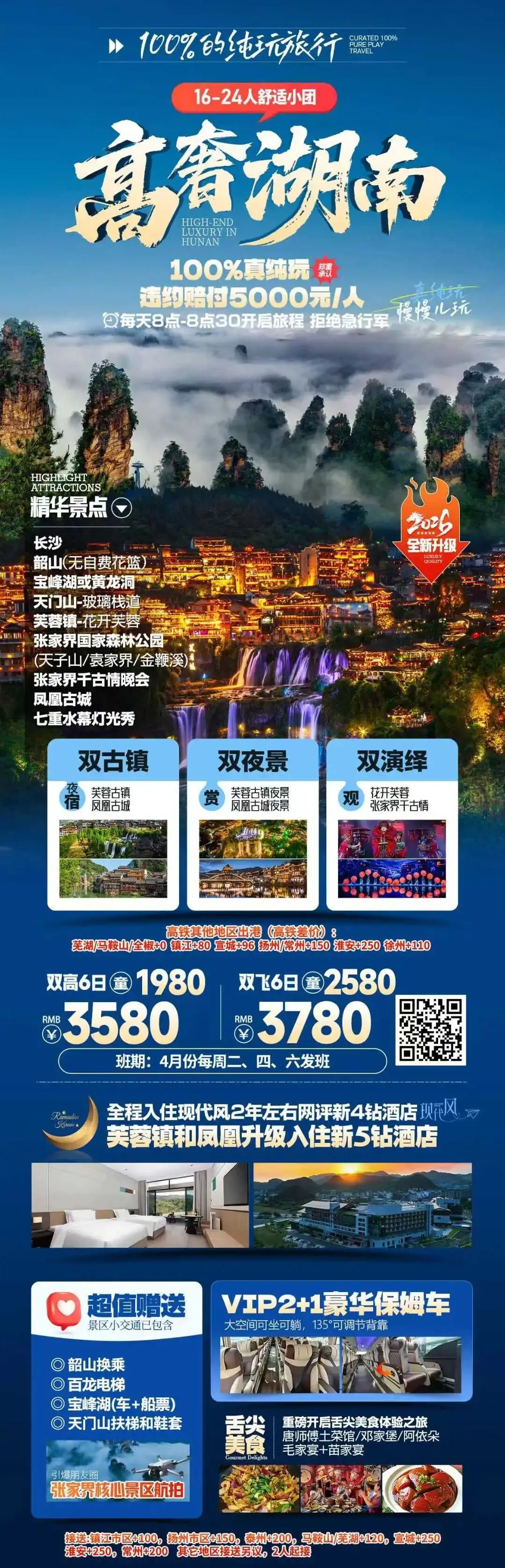 【错峰湘西】湖南长沙韶山 张家界 国家森林公园 袁家界 天子山 金鞭溪 天门山 凤凰古城 芙蓉镇