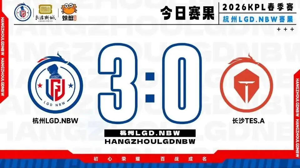 2026年KPL春季赛常规赛第三轮战火持续,在杭州LGD.NBW对阵长沙滔博的焦点对决中,LGD.NBW展现出碾压级的竞技状态,全程掌控比赛节奏,以3:0的悬殊比分干净利落零封对手,豪取春季赛六连胜,同时稳稳锁定A组第一席位,以全胜之姿昂首挺进季后赛,用一场酣畅淋漓的胜利,宣告着队伍的强势崛起!