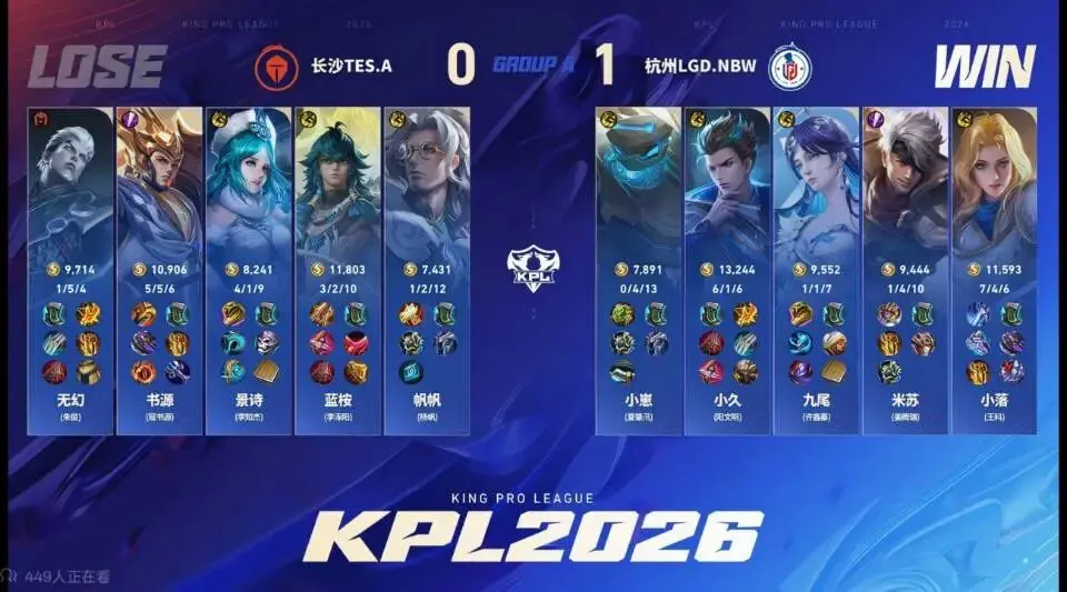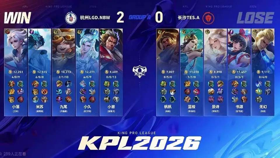 拿下本场胜利后,杭州LGD.NBW在2026KPL春季赛豪取六连胜,以不败战绩稳居A组榜首,提前锁定季后赛席位,成为本赛季A组表现最亮眼的战队。