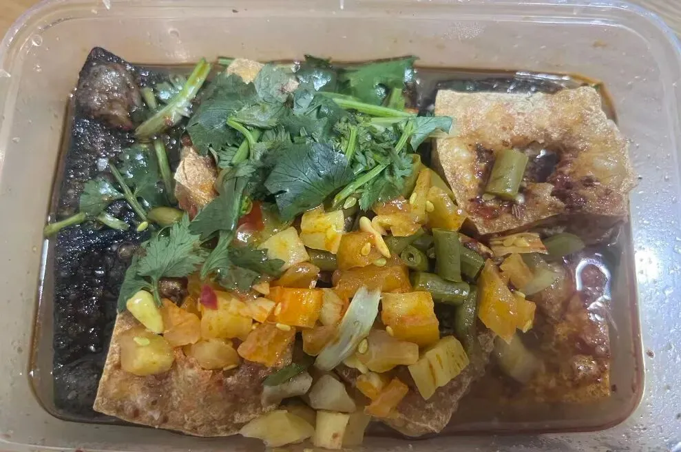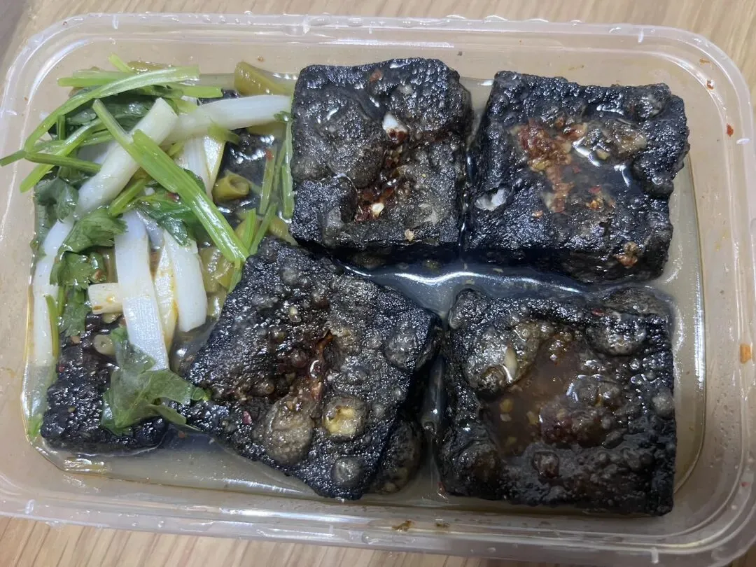 以前对臭豆腐无感,原来是没有吃到正宗的,儿子一开始还捏着鼻子,既期待又怕辣。结果好家伙,一边咕咚咕咚喝水,一边还往嘴里塞,用他的话来形容:都爆汁了~