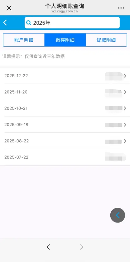 点击账户信息或者明细账即可查看缴存明细