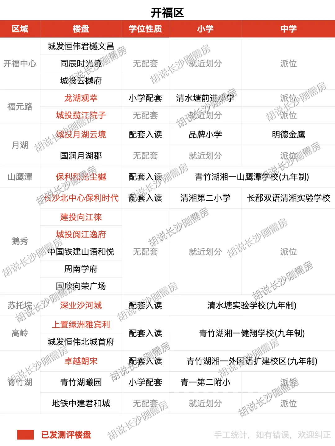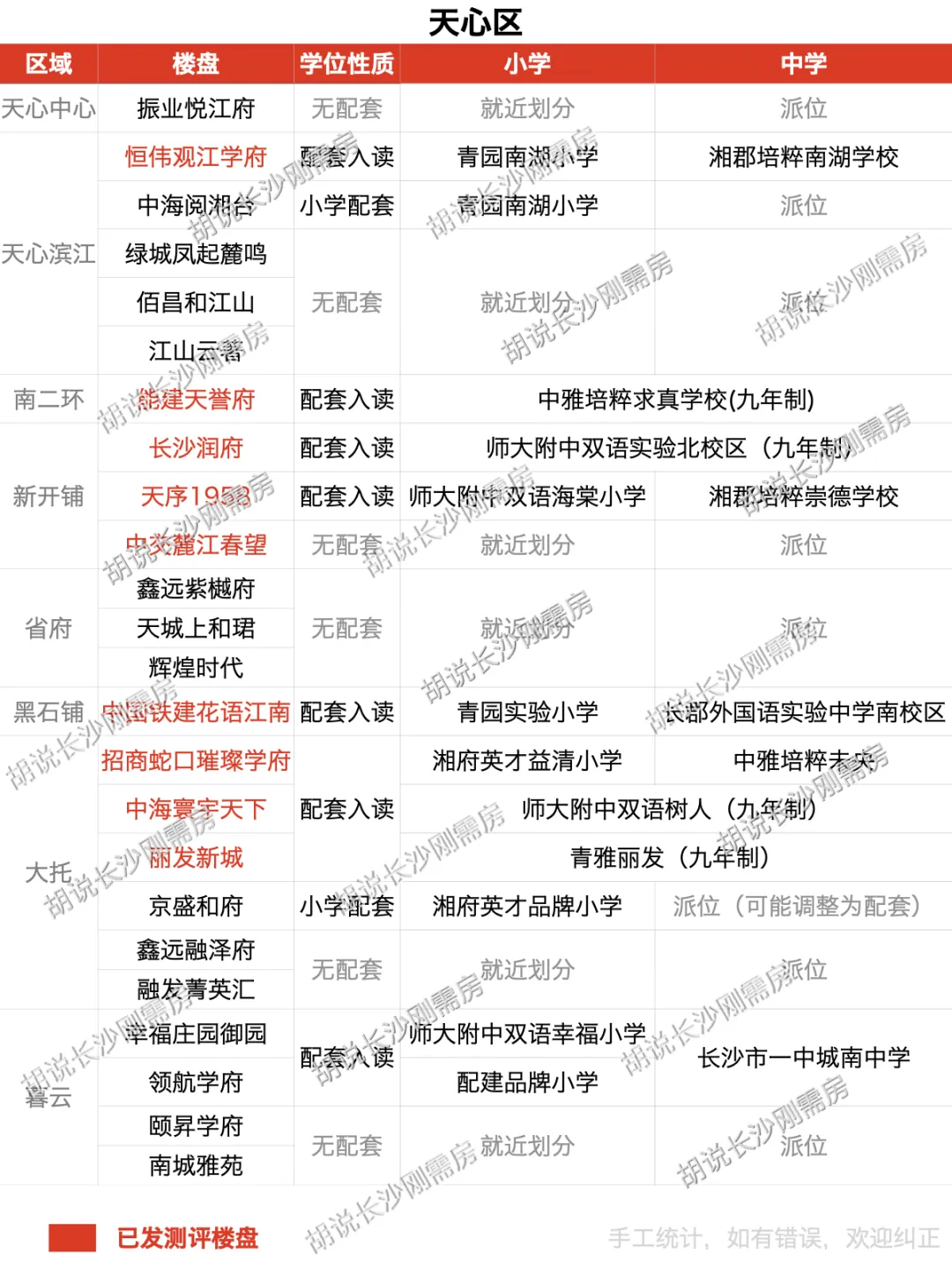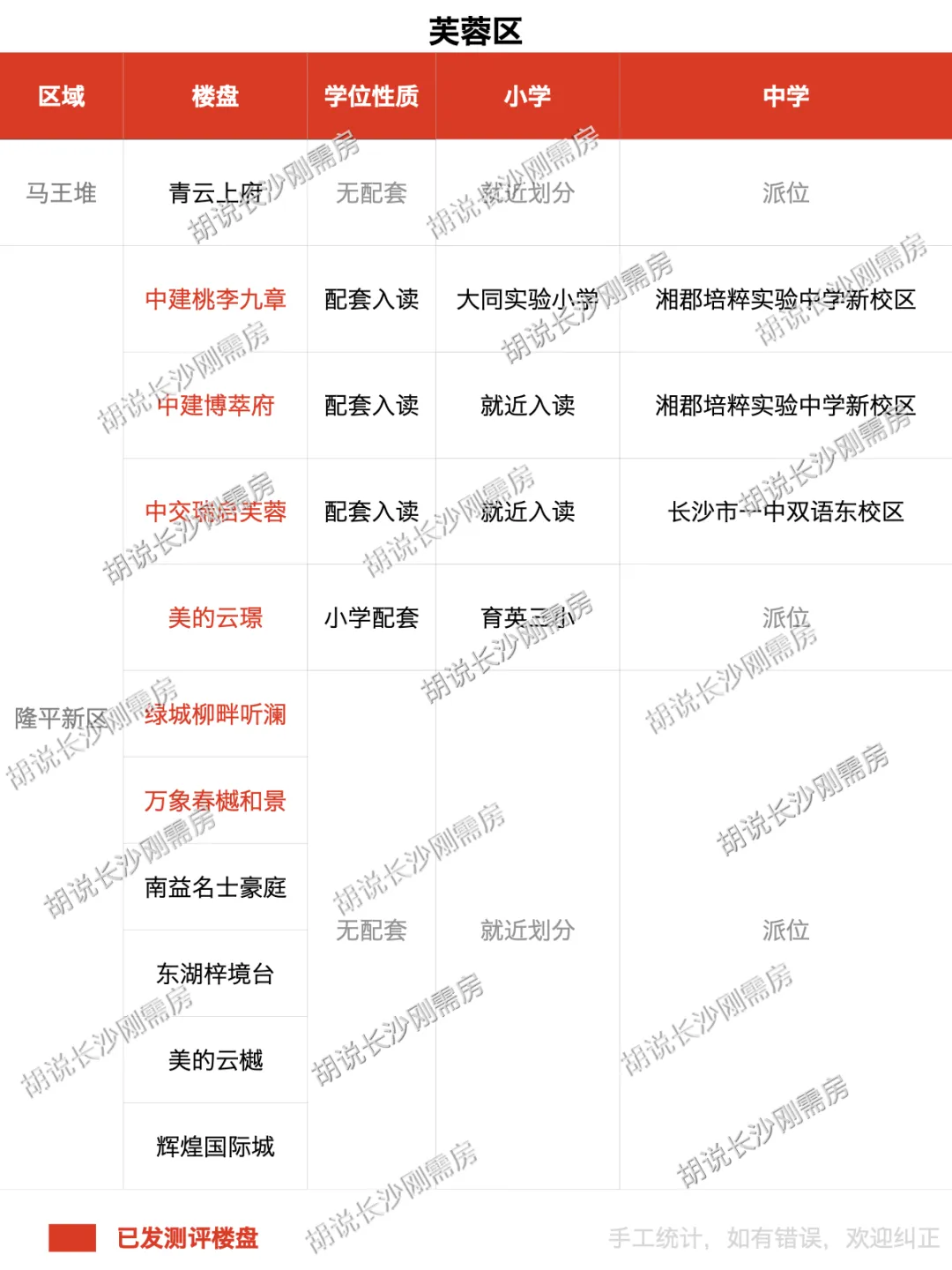 笔者用7张图对长沙在售(含全新待开)的173个楼盘进行盘点,直观看出各个楼盘学位配套情况,部分名词释义如下:
