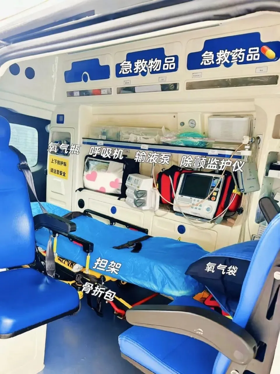 车内堪比移动监护室:心电监护、氧气瓶、吸痰器、呼吸机、防褥疮气垫...按需配置,危重患者也能全程生命支持,不用担心中途断氧、监护缺位。