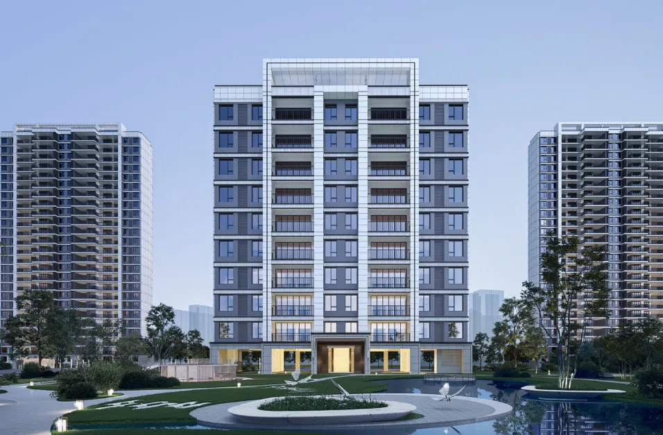🔸约2.0容积率,约40%绿化率,楼间距更宽;南低北高排列式布局,采光、通风俱佳。【现代简约立面】