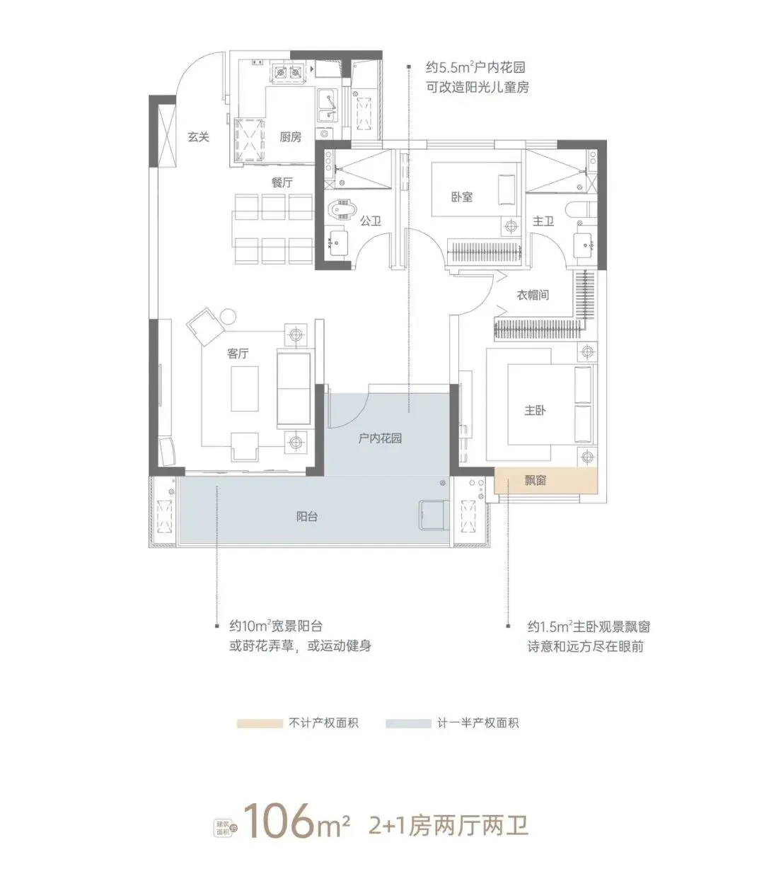 🔅建面约106-129㎡阔景高层,建面约135-143㎡低密洋房,建面约138㎡复式洋房,一家三口、三代同堂,即可一步到位106户型亮点: