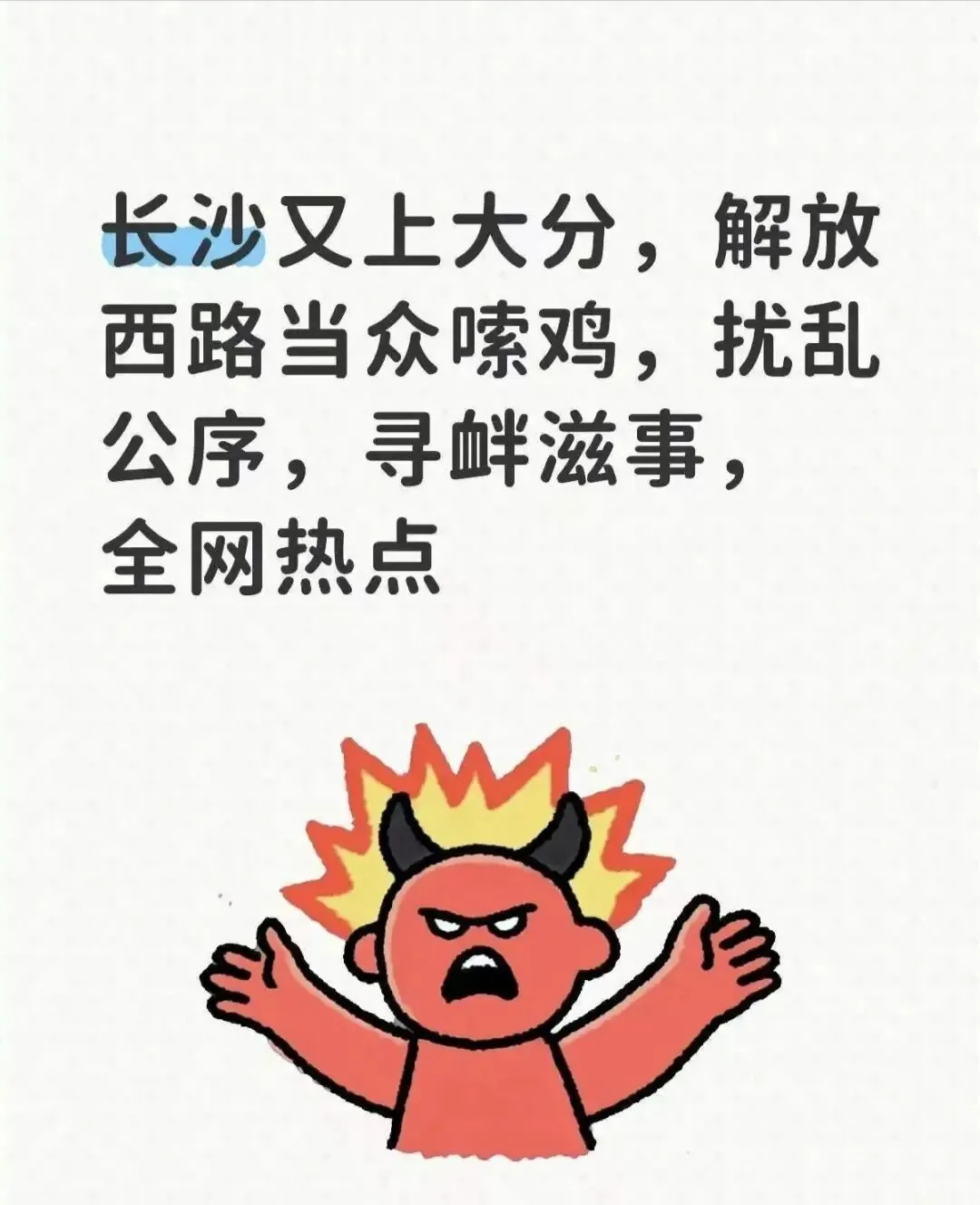 解放西可以很热闹,长沙可以很包容,但绝不允许有人肆意撒野、败坏风气。网络不是法外之地,网红不是免罪金牌,靠低俗博眼球,最终只会被法律打脸,被大众唾弃。