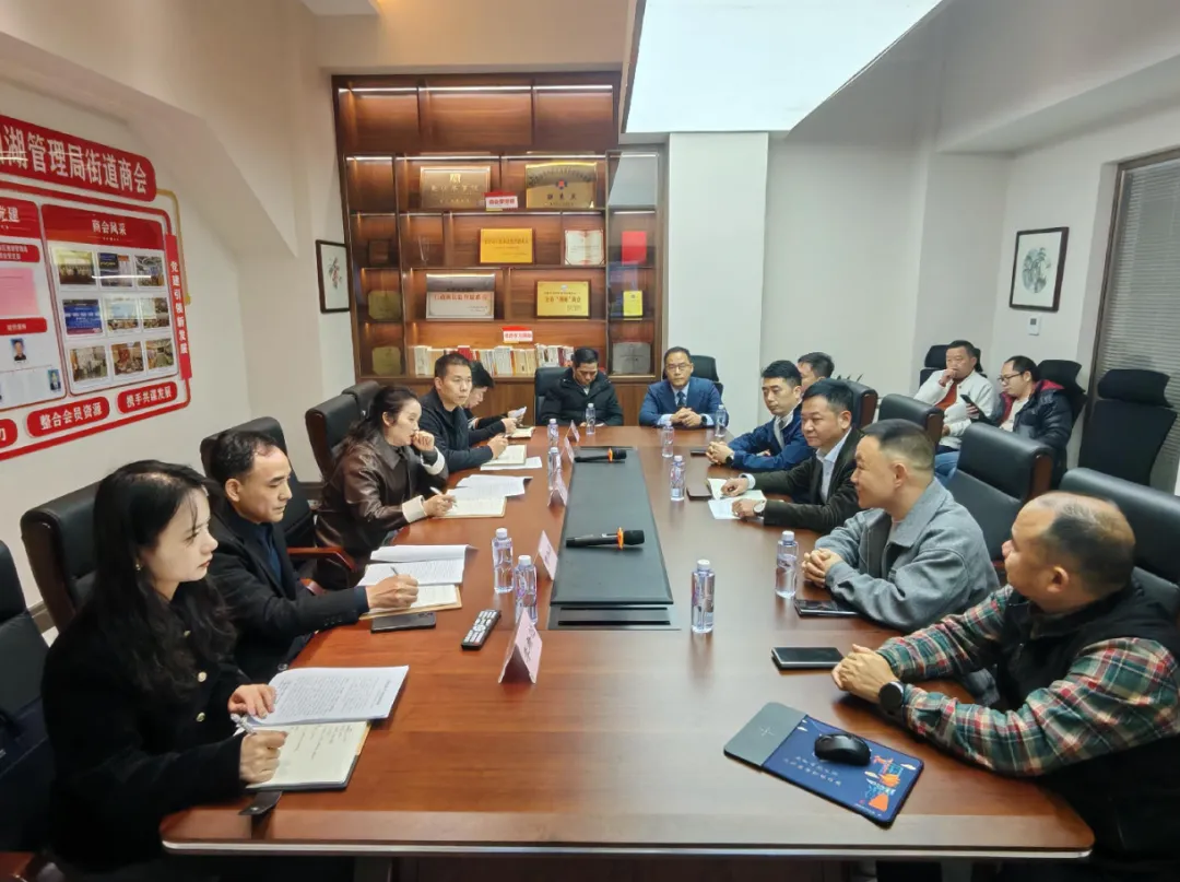 2026年3月19日上午,长沙市湘湖管理局党委书记、局长徐勐龙,湘湖管理局党委副书记、副局长周裕熊,企业管理科科长曾小兵一行调研湘湖街道商会,湘湖街道商会班子成员及企业代表参加,并进行座谈交流。此次调研聚焦商会建设提质、会员企业发展、营商环境优化等核心议题,倾听企业诉求、凝聚发展共识,共商湘湖区域经济高质量发展良策。