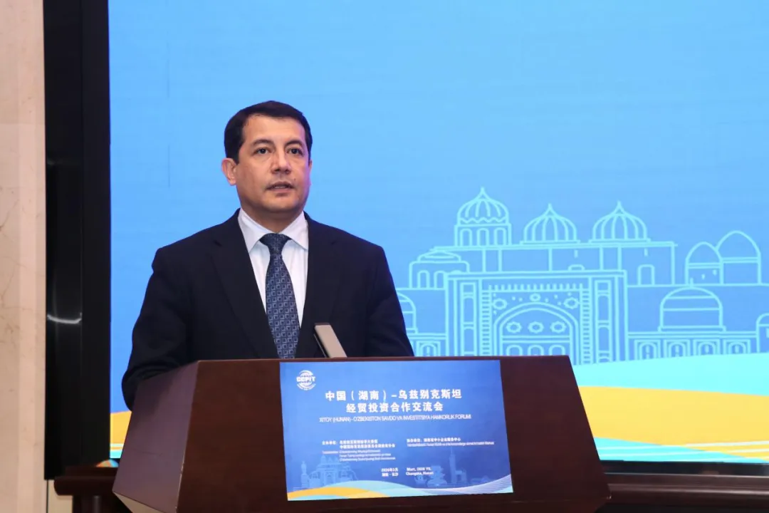 3月19日下午,由乌兹别克斯坦驻华大使馆与湖南省贸易促进委员会共同主办的中国(湖南)—乌兹别克斯坦经贸投资合作交流会在长沙举行。来自双方政府部门、商协会以及60余家企业的代表齐聚一堂,围绕产业合作与投资机遇展开深入交流。乌兹别克斯坦驻华大使法尔霍德·阿尔济耶夫、湖南省贸促会会长杨爱云出席活动并致辞。