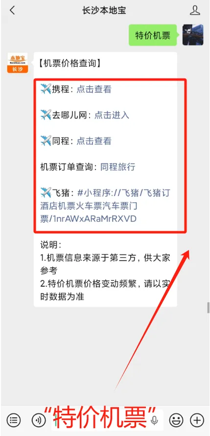后台对话框回复【特价机票】