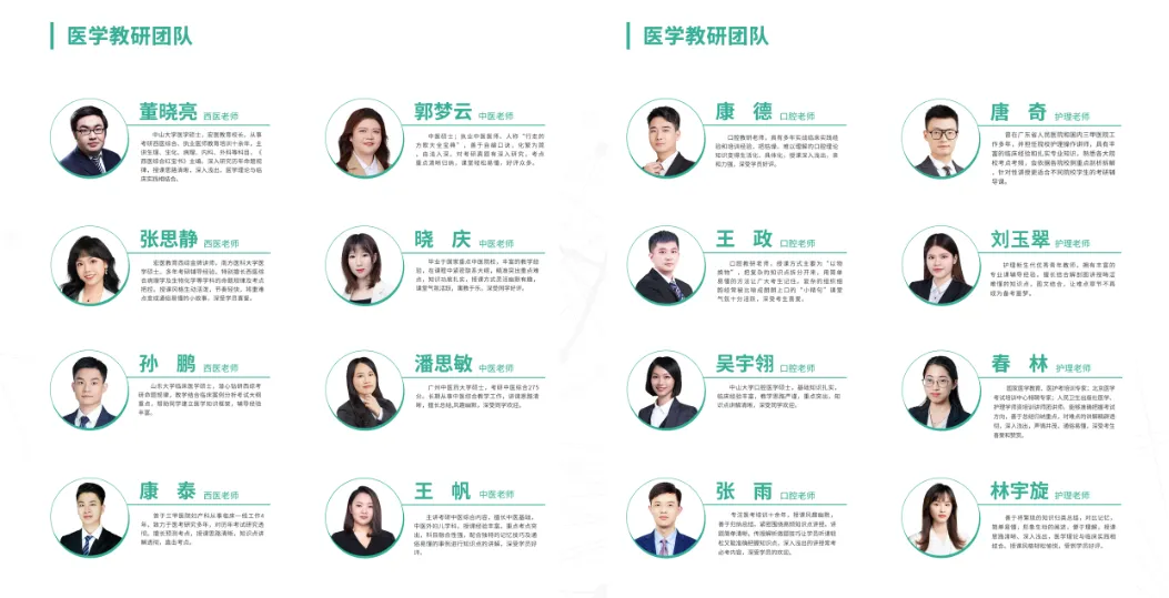 更有政治、英语教研天团及春林、林宇旋等护理名师,全方位助力医学生攻克英语、政治等公共课短板,实现全科突破。