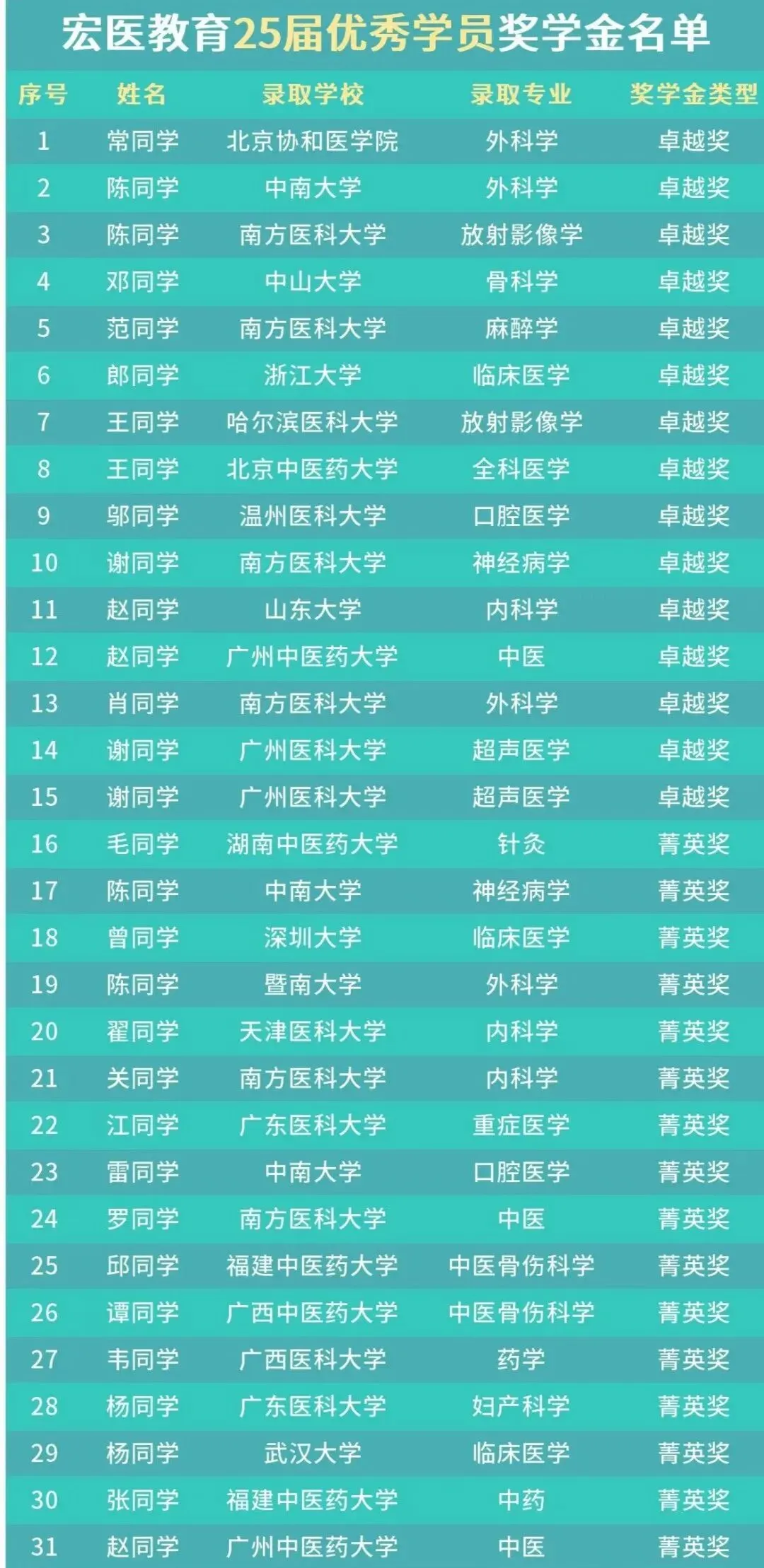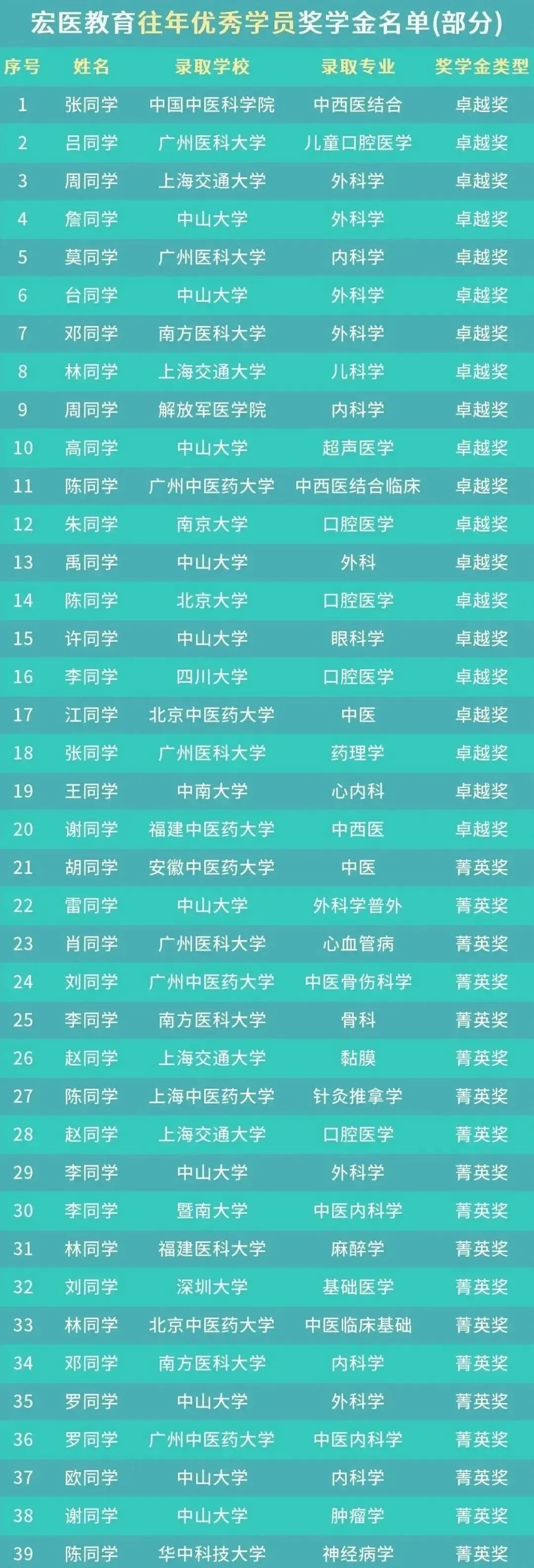 每年都有大批宏医学子成功上岸中南大学湘雅医学院、中山大学、南方医科大学、福建医科大学等国内顶尖医学院校,在医学考研领域保持着领先的通过率。从跨考零基础到二战提分,大量真实上岸案例充分印证了宏医教育的专业实力与教学质量,是医学生考研路上的可靠选择。