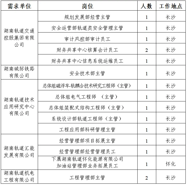 根据工作需要,湖南轨道集团及上述下属公司面向社会公开招聘优秀人才,具体公告如下: