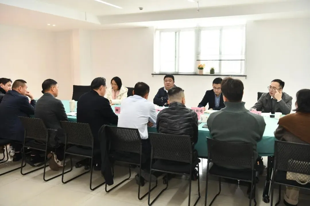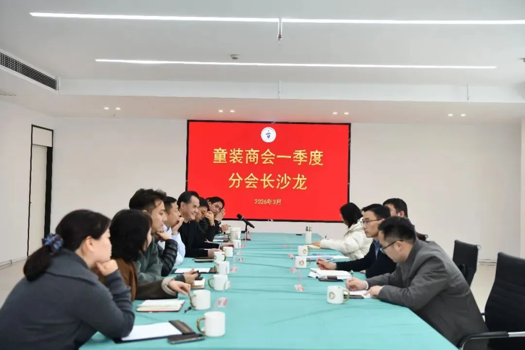 区童装产业发展中心党组书记、主任马姚靖、织里童装商会党委书记史宁慧、会长柯文化、监事会主席(羽绒分会会长)濮新泉、海外贸易分会长胡冰峰、面辅料分会长杨建平、运动服饰分会长陈锋、跨境电商分会长颜烈荣、电商分会监事长谷梅飞、校服协会副会长叶永红、童装商会副会长张连中、姚东等围绕如何提升织里童装产业新的发展优势和新竞争力进行探讨、分享、交流。