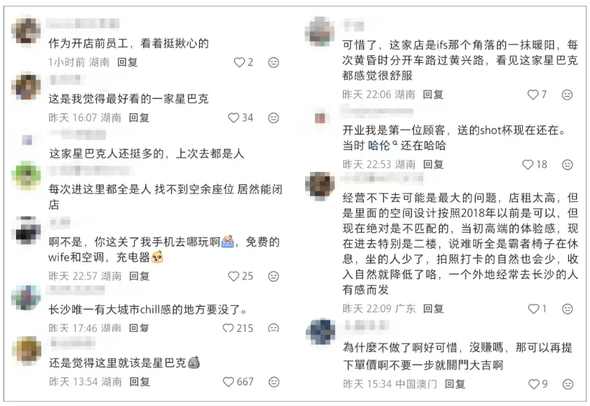 所以,一听闻这家与IFS国金中心基本同期开业的元老级入驻商家即将关停,许多人都感到不敢置信,“每次进这里都全是人 找不到空余作为 居然能闭店”、“还是觉得这里就该是星巴克”、“作为开店前员工,看着挺揪心的”、“这么一家放眼全国都这么有特色的门店就这样落幕了!不舍!”。