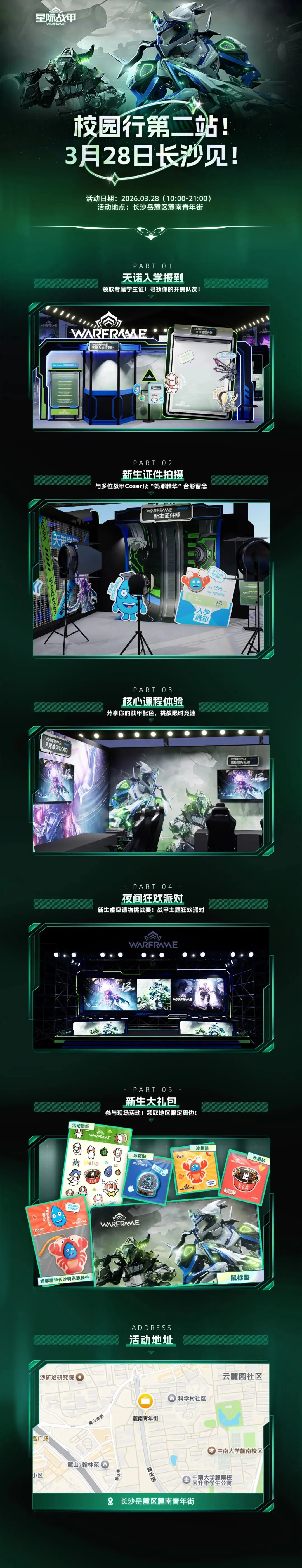 各位天诺战士!星际战甲校园行·第二站长沙站正式启动,我们将在长沙市岳麓区麓南青年街等待大家!