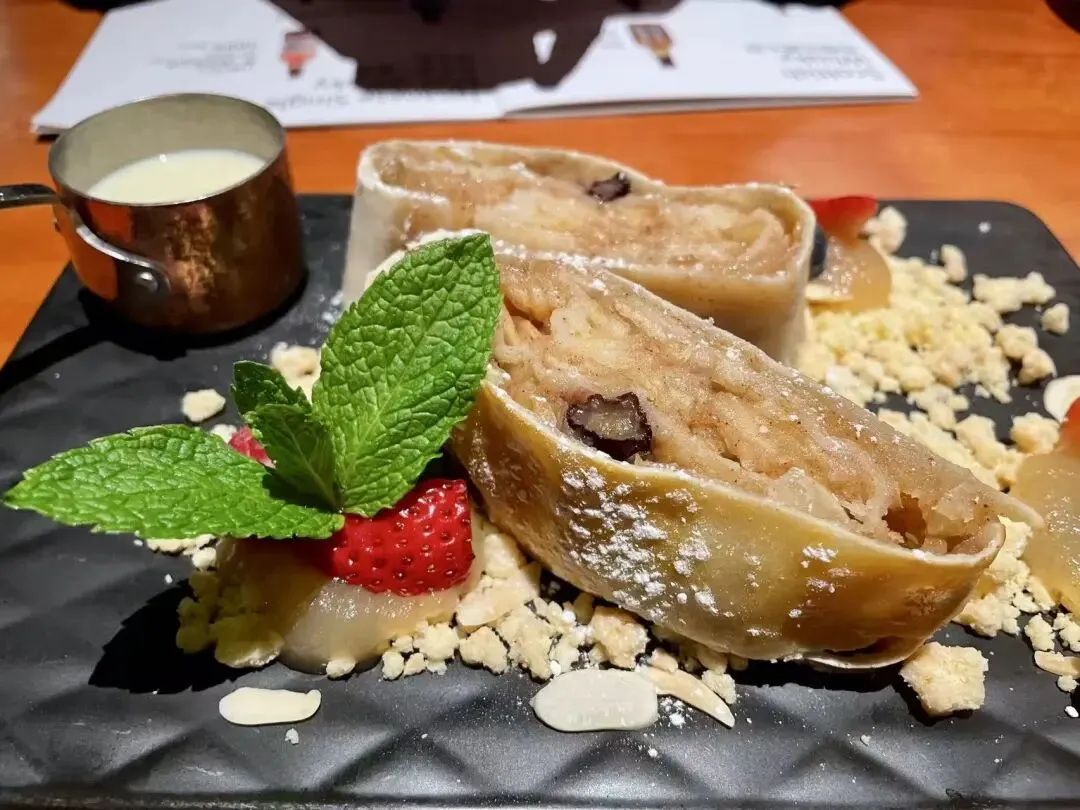 内里的苹果酱熬的很香,没有放很多糖,是苹果本身的甜度