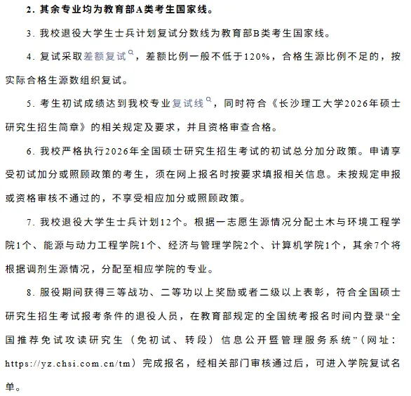 长沙理工大学2026年全国硕士研究生招生考试考生进入复试的初试成绩基本要求