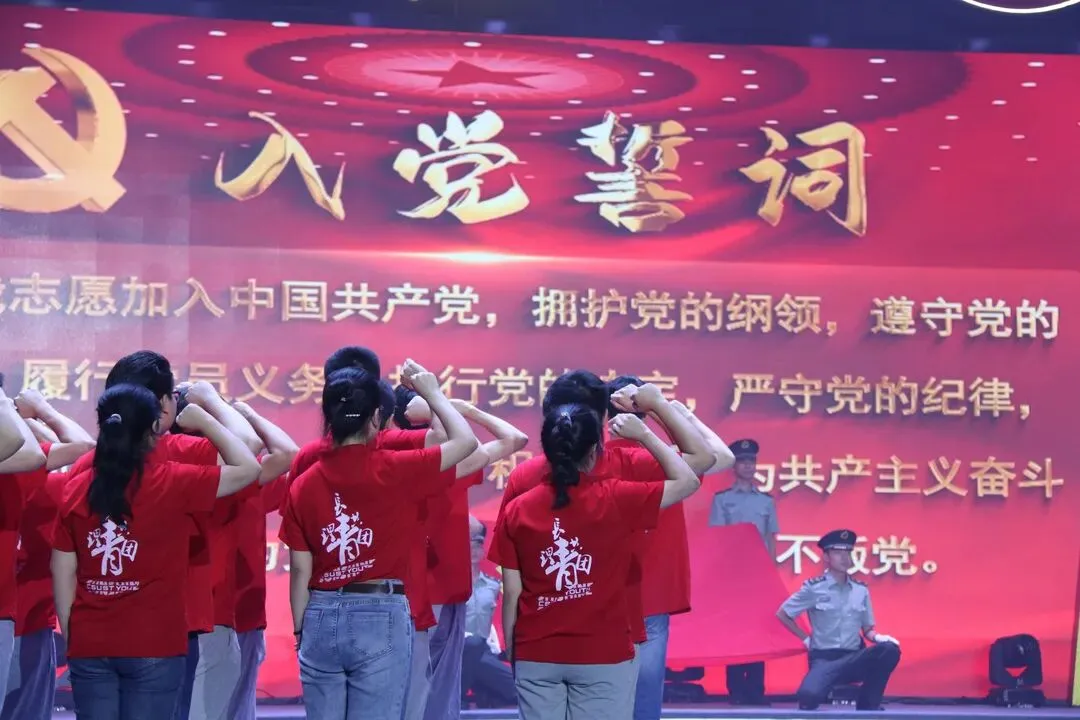晚会中,全体党员重温入党誓词