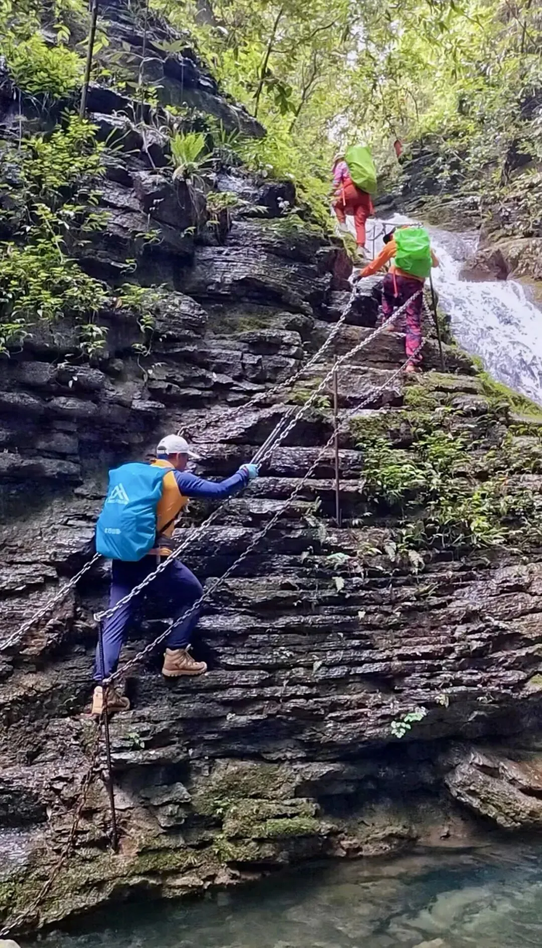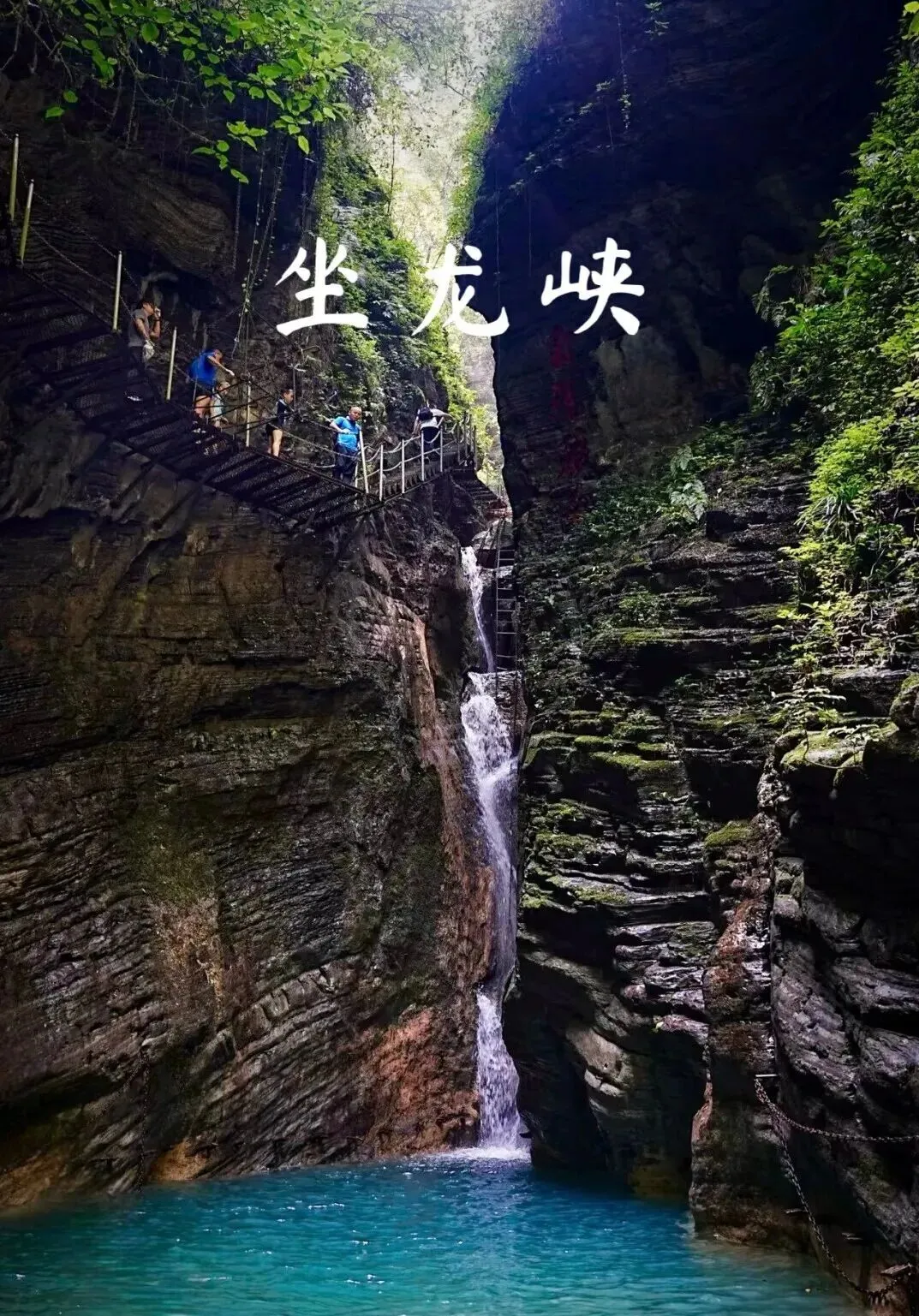 #坐龙峡全程铁链钻进深山峡谷!湘西坐龙峡真的要去,悬崖绝壁之间的特种游道,从山脚下沿着峡谷深处攀登,近乎 90度的索道,太刺激了 几乎仅靠脚踩钢钉,手扶铁链一步步向上爬,手脚并用,一步一景,越往深处走,清澈见底的绿色潭水,从头顶飞落的瀑布,你永远不知道转角会有怎样的景色,整个景区很原生态,没有过度开发的样子,那种探索的感觉反而很吸引人!