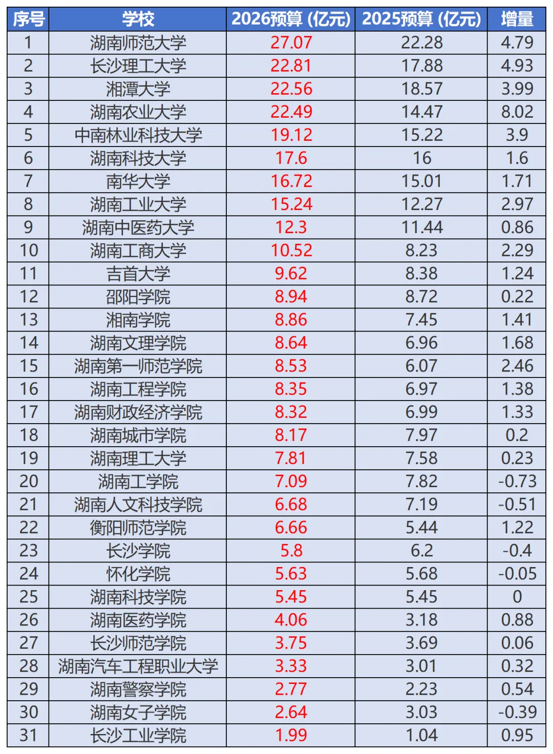 近日,湖南省教育厅公布了2026年省属高校经费预算,数据很亮眼。