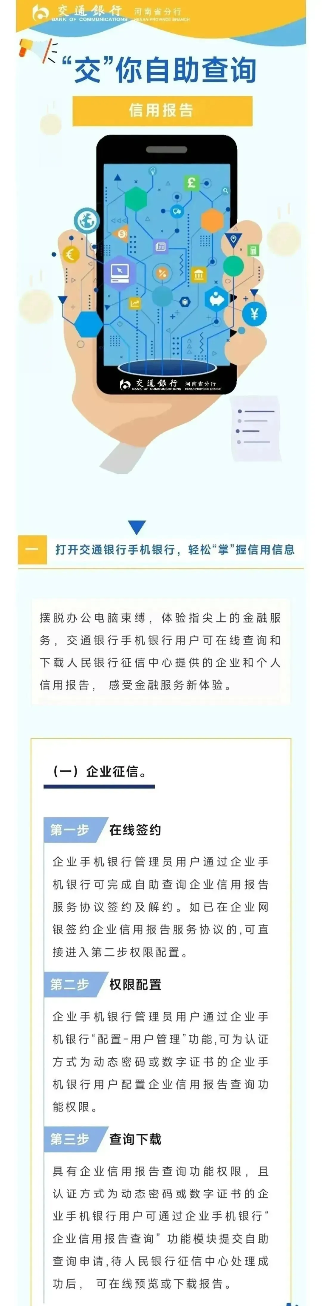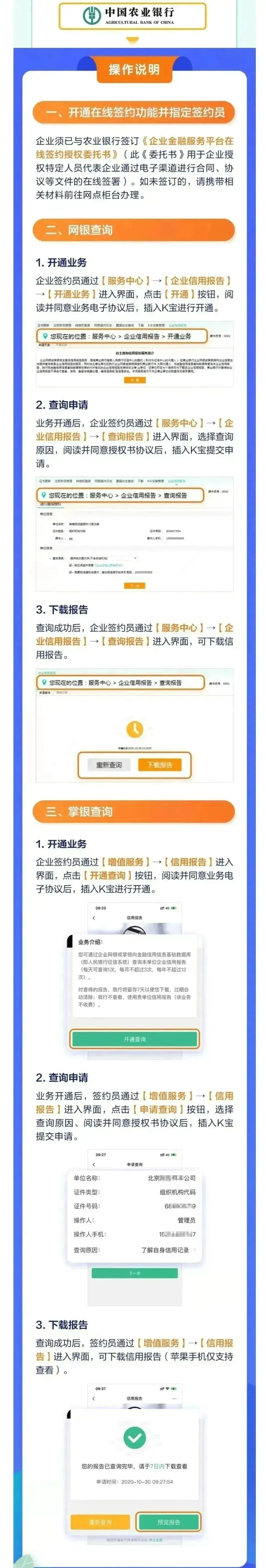 在企业网银中,通常进入“客户服务”或“特色业务”栏目,选择“信用报告”相关选项,阅读并同意业务协议,输入U盾密码确认开通。
