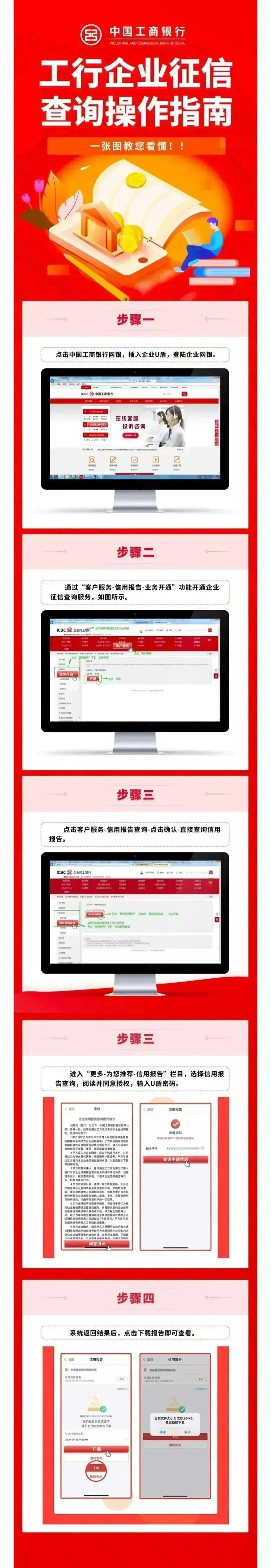 中国银行:首次需要去线下去开户行,开通《中行企业网银信用报告查询功能》,开通后,登录企业网银端查询。