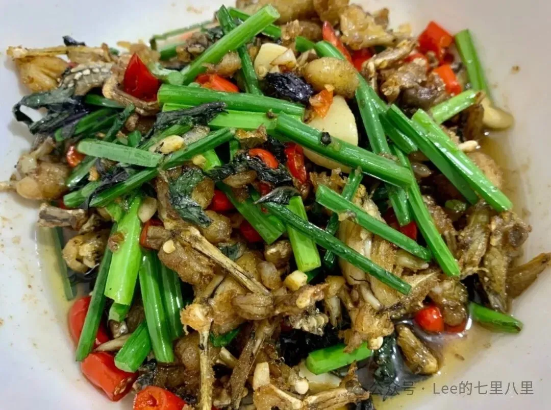 虽然地方不大,但是外面也可以坐,大排档的感觉非常好,老居民区,大树下,很放松。爆炒田鸡,老长沙搞法,紫苏、辣椒、大蒜、韭菜花爆炒,田鸡肉焦香鲜嫩,也入味。