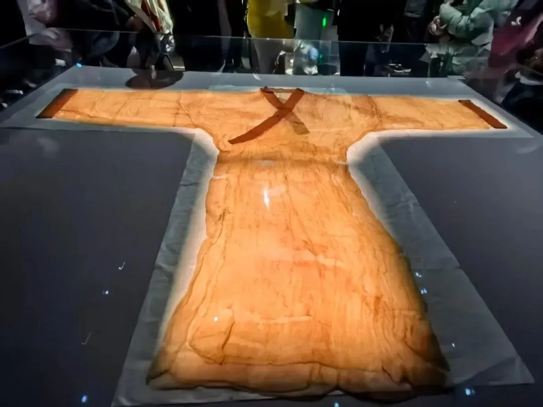 陪葬品中最值得一提的是素纱单衣和T形帛画,素纱单衣重仅49克,薄如蝉翼、轻若云雾,相当于一个鸡蛋的重量,是迄今所见最早、最薄、最轻的服装珍品,是西汉时期纺织巅峰之作,代表了汉初养蚕、缫丝、织造工艺的最高水平。