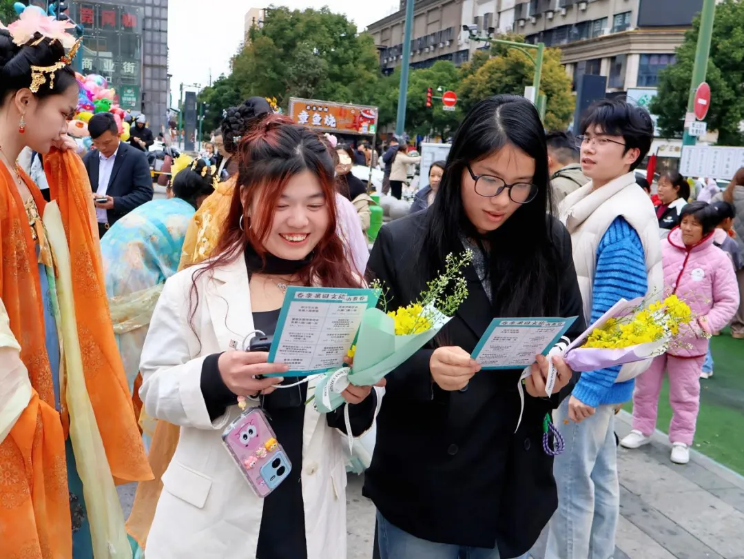 “这花是在果园镇采的吗?樱花谷现在正是盛花期?”在通程广场,接过花束的市民李女士当场扫码关注,计划周末带家人赴果园镇踏青。据统计,活动累计发放花束、消费券及宣传手册500余份,实现从“流量”到“留量”的有效转化。