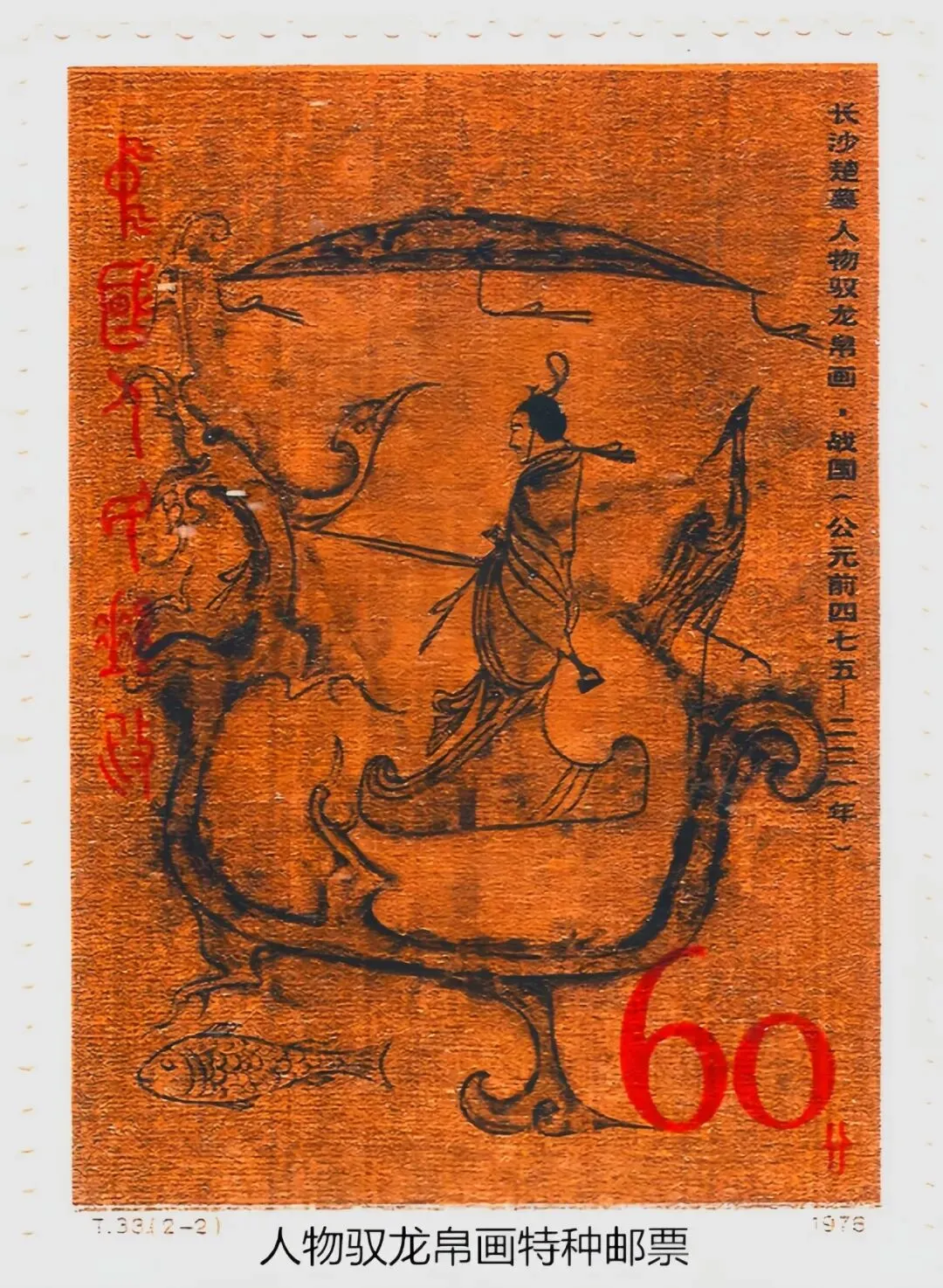 文物考古界将此画与1949年长沙陈家大山楚墓出土的《人物夔凤帛画》一起并称为“先秦绘画艺术中的双璧”。1978年国家邮政部以这两幅画为图案发行了一套两枚的《长沙楚墓人物帛画》特种邮票(T.33),足见这两幅帛画在国宝级文物中的地位。