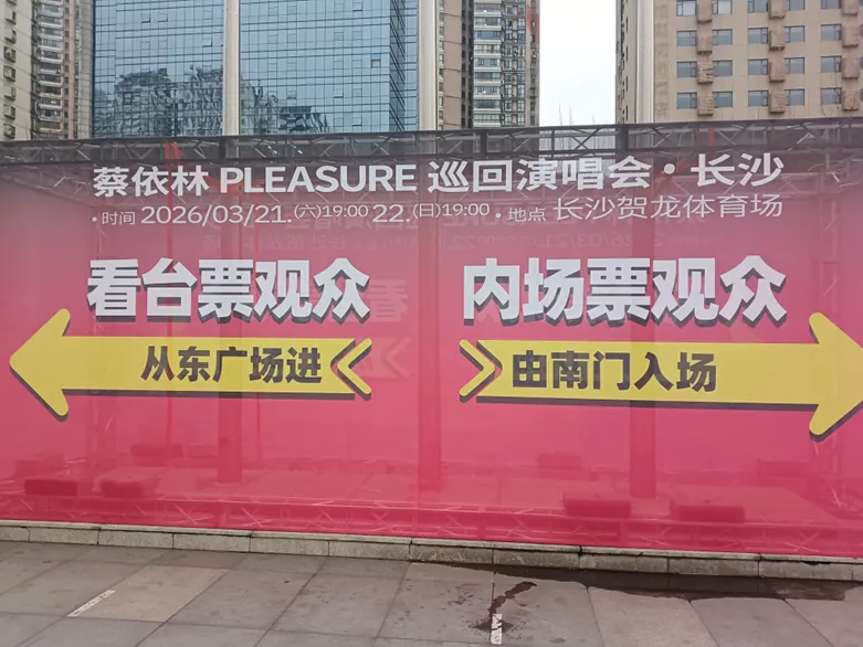 在昨天(2026年3月21日),贺龙体育中心,两项活动火热进行着。贺龙体育场台湾天后歌手蔡依林的演唱会火热进行着。贺龙体育馆NBL长沙勇胜与上赛季NBL总冠军香港金牛常规赛收官之战!