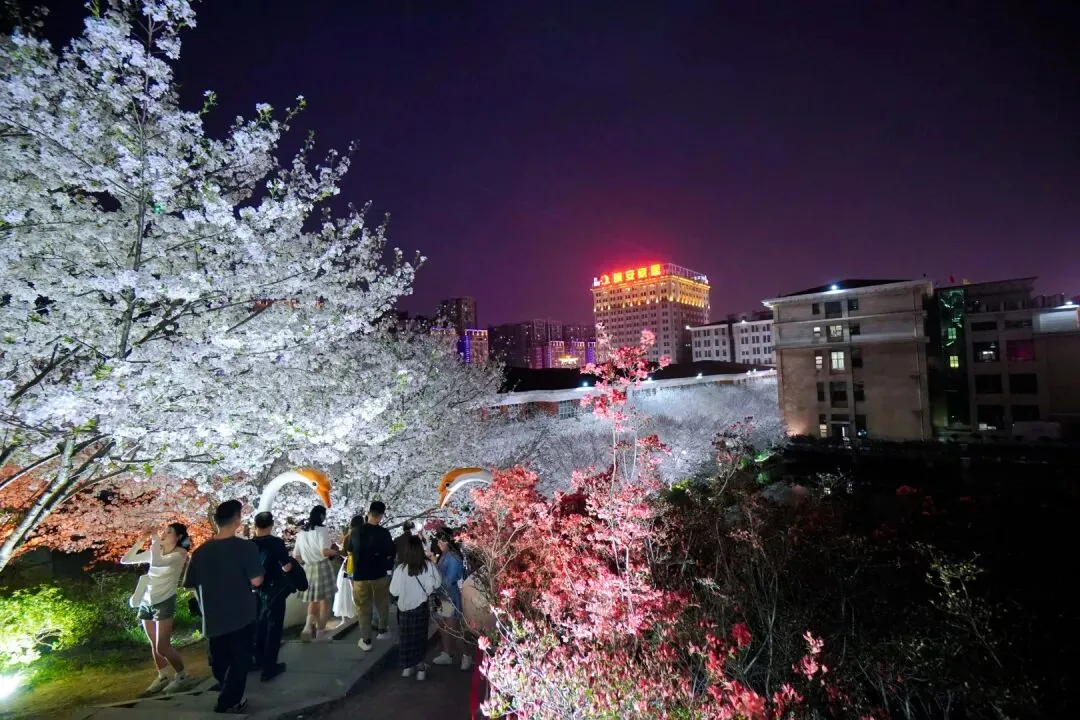 2.夜樱迷境星光秀:全周期开放!白天是粉海漫舞,入夜暖光勾勒樱枝,蓝调时刻拍氛围感大片封神;