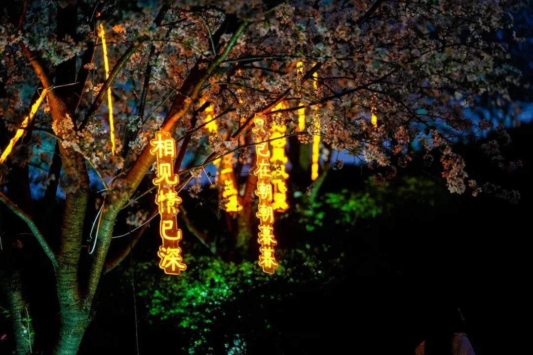 ⑤ 夜樱灯光区:暖光与夜樱交相辉映,带补光灯拍,氛围感直接拉满。