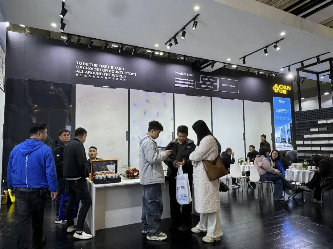 凭借过硬的产品实力与贴心的金牌服务,中迅石英石在展会现场收获颇丰。