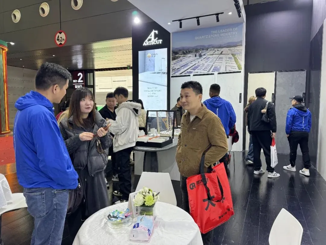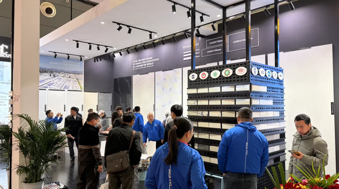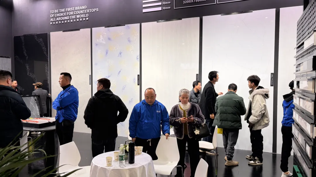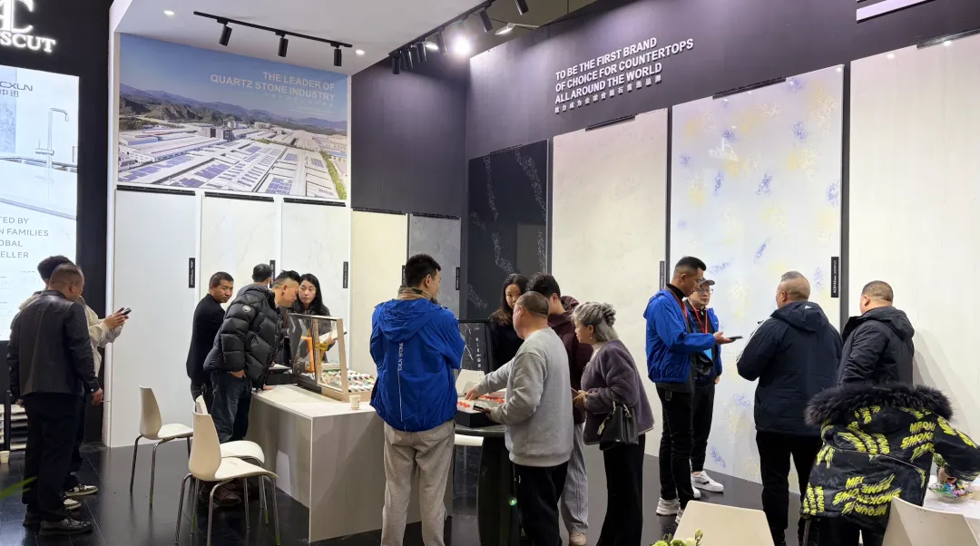 在为期三天的展会中,中迅石英石的展位始终人气爆棚,来自全国各地的经销商、设计师、家装业主慕名而来。展位现场,中迅将石英石产品与不同风格的家居搭配花色全方位展示,不少观众在体验后纷纷表示,中迅石英石不仅在质感上媲美天然石材,在色彩与款式的丰富度上更胜一筹,完全满足了个性化定制的需求。