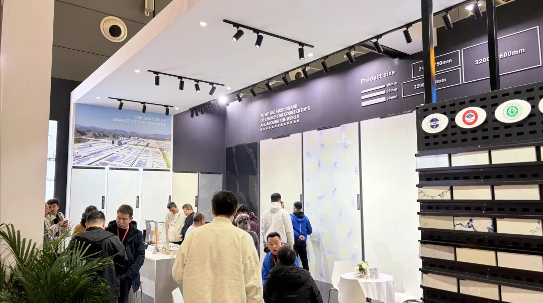 长沙博览会是中部地区建材行业极具影响力的交流与合作平台.中迅石英石以“自然艺术·定制未来”为参展主题,携全新升级的产品矩阵惊艳亮相,凭借颠覆性的创新设计与卓越的产品品质,再次引领行业潮流,彰显中国高端石英石品牌的标杆风范。