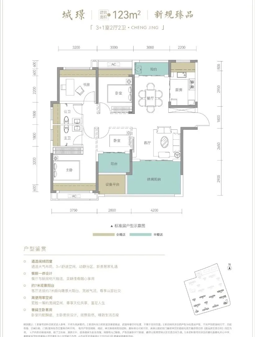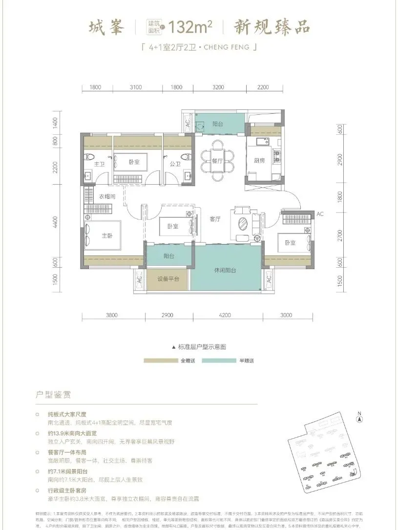 · 132㎡做到4+1房,南北通透,南向面宽约13.9米,主卧行政级配置