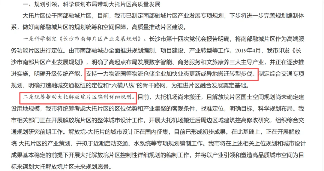 城市的整体布局来讲,长沙现在正在大力的推进城市南拓,然后包括长株潭一体化,那把这个物流园搬到九华,就可以让城市的中心更有效的服务到湘潭,包括实现区域的协同发展。