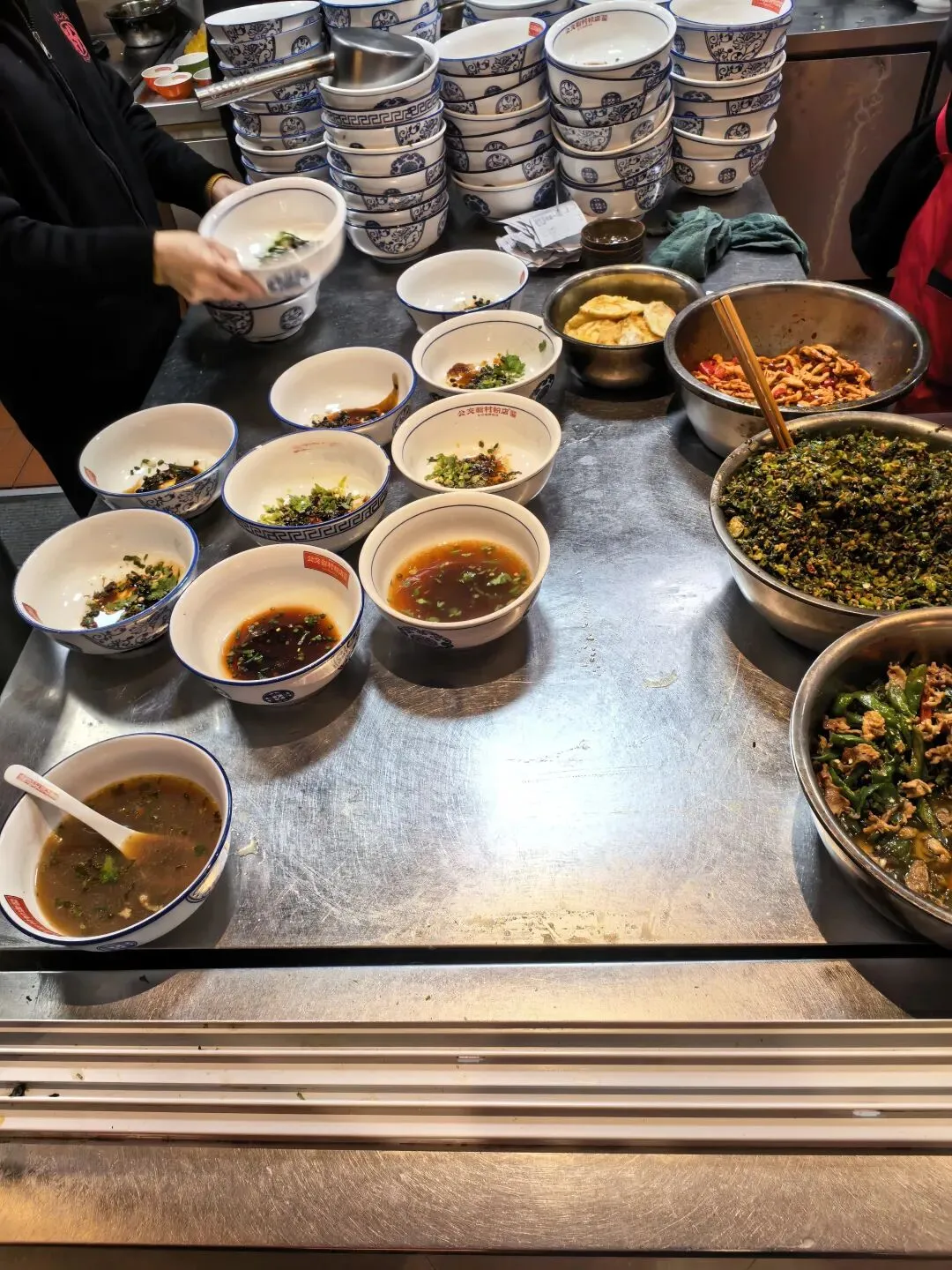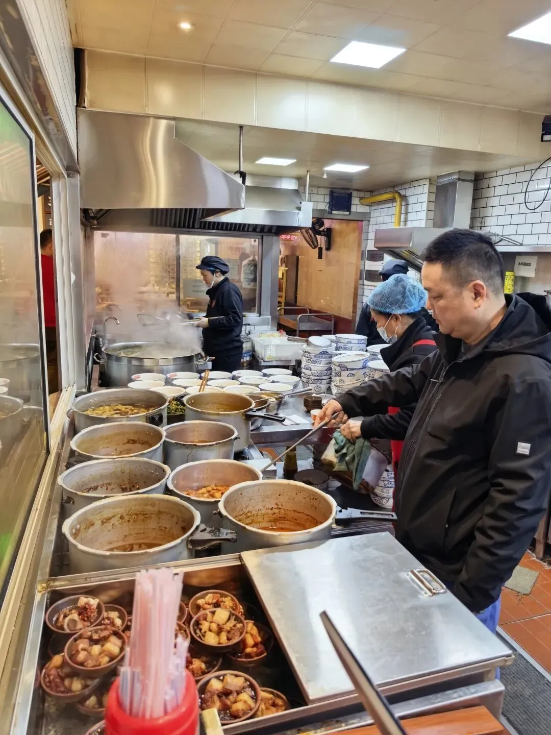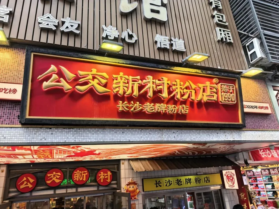 长沙的早餐也非常不错,出宾馆就看到一家名字叫“公交新村粉店”的,店里吃饭的客人在排队,就选了这家。