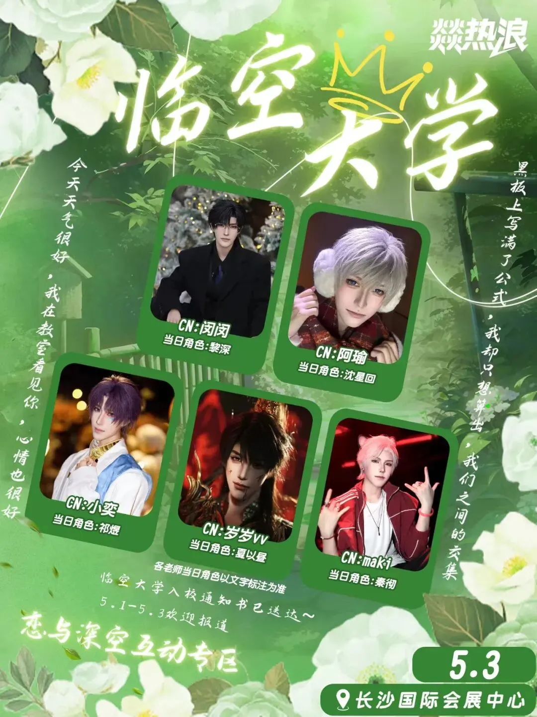 展会基础信息✨规模:四馆全开(W1-W4+中心广场),空调全天开放,场馆超5万㎡超宽敞!5.1川隐海、千千、叶勤聪、莲雾、鬃毛、绝版金丝猴、帝人mikado&萝卜D、霍谧、啊川、cv徐宇隆、一只知秋5.2kakumi、ikrae小木、奈米meow、云哲、穆逢春- ✨ 分子互动:《万圣街》《有兽焉》《非人哉》等- ✨ 经典国漫:《沧元图》《神印王座》《画江湖之不良人》《一人之下》《十日终焉》《秦时明月》、《天行九歌》《武庚纪》等恋与深空coser