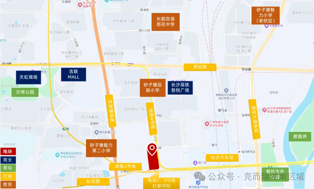 该地块位于雨花区高铁新城核心,高园子路以东、黎托路以西、杜花路以北。