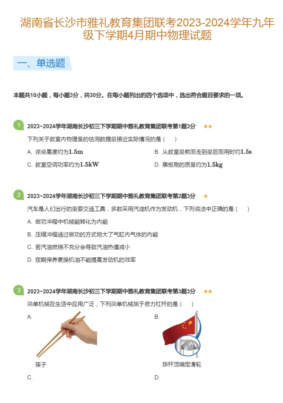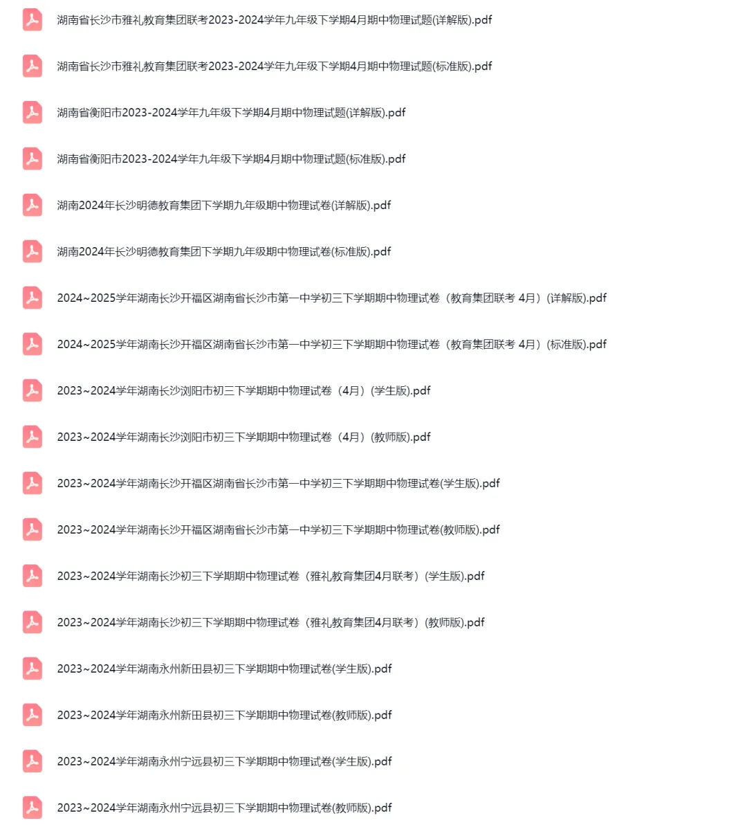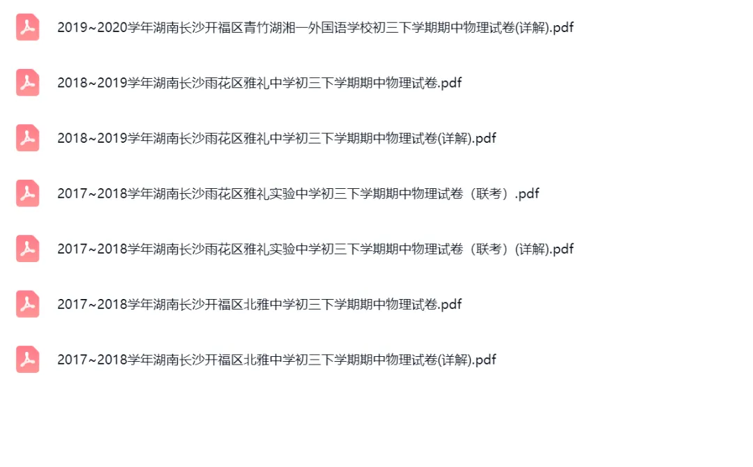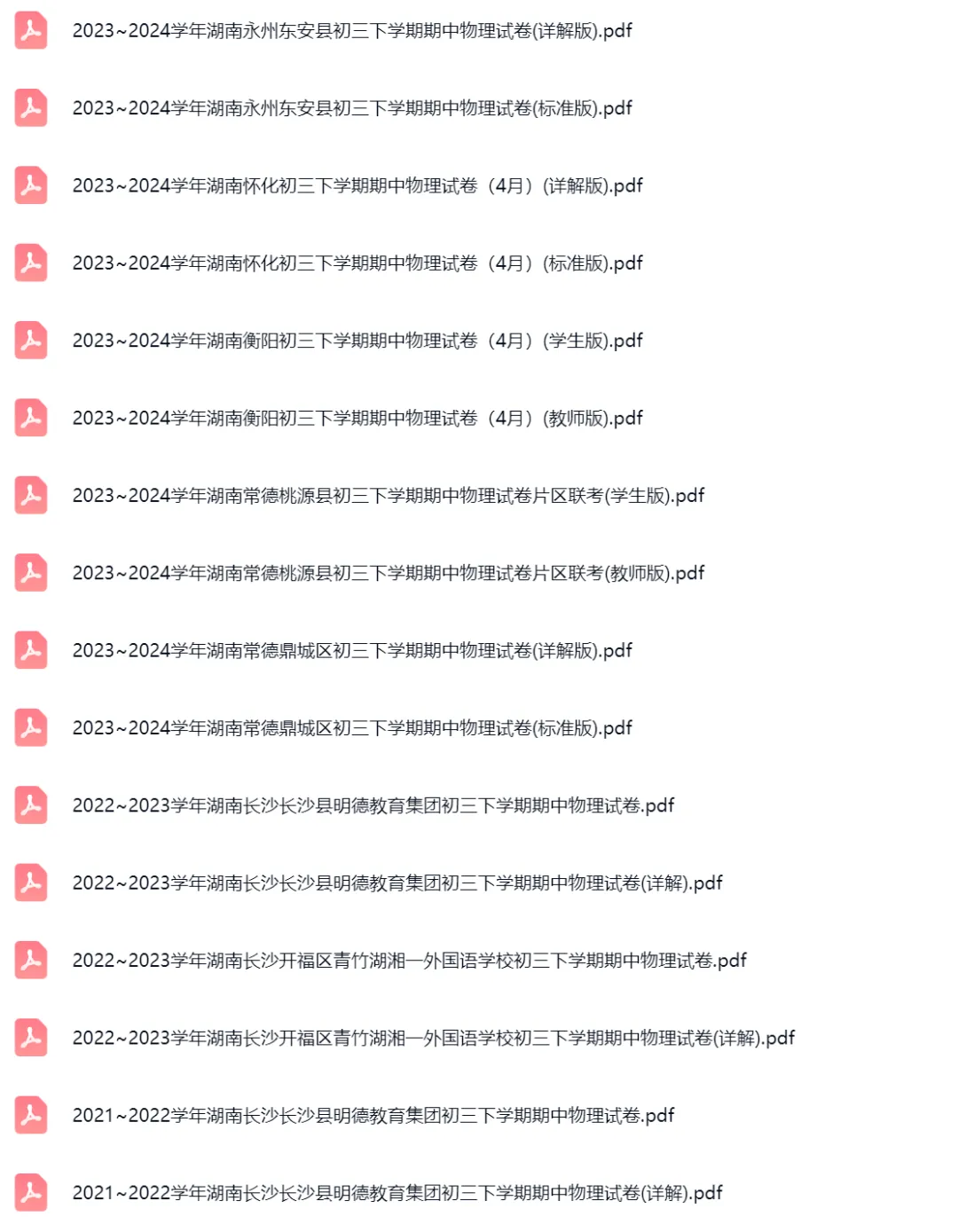 58套2017-2024年湖南长沙初三下学期期中物理试卷及答案解析
