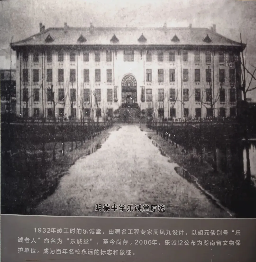 如今明德中学泰安里老校区尚存老教学楼“乐诚堂”、楚辞亭、华兴会成立会旧址等遗迹。