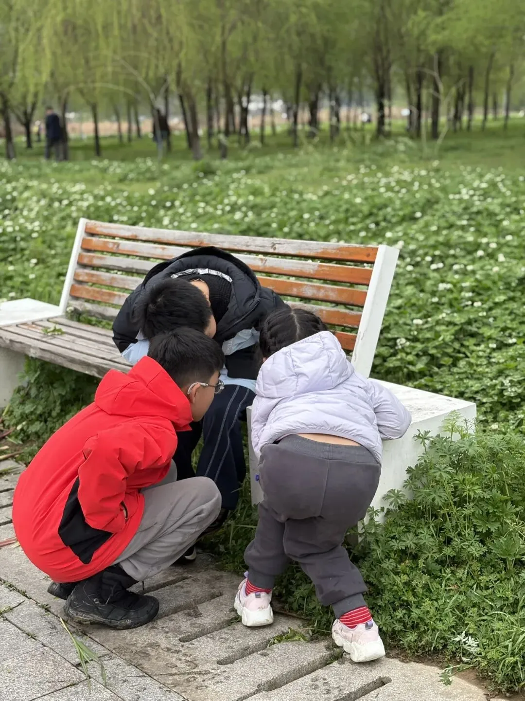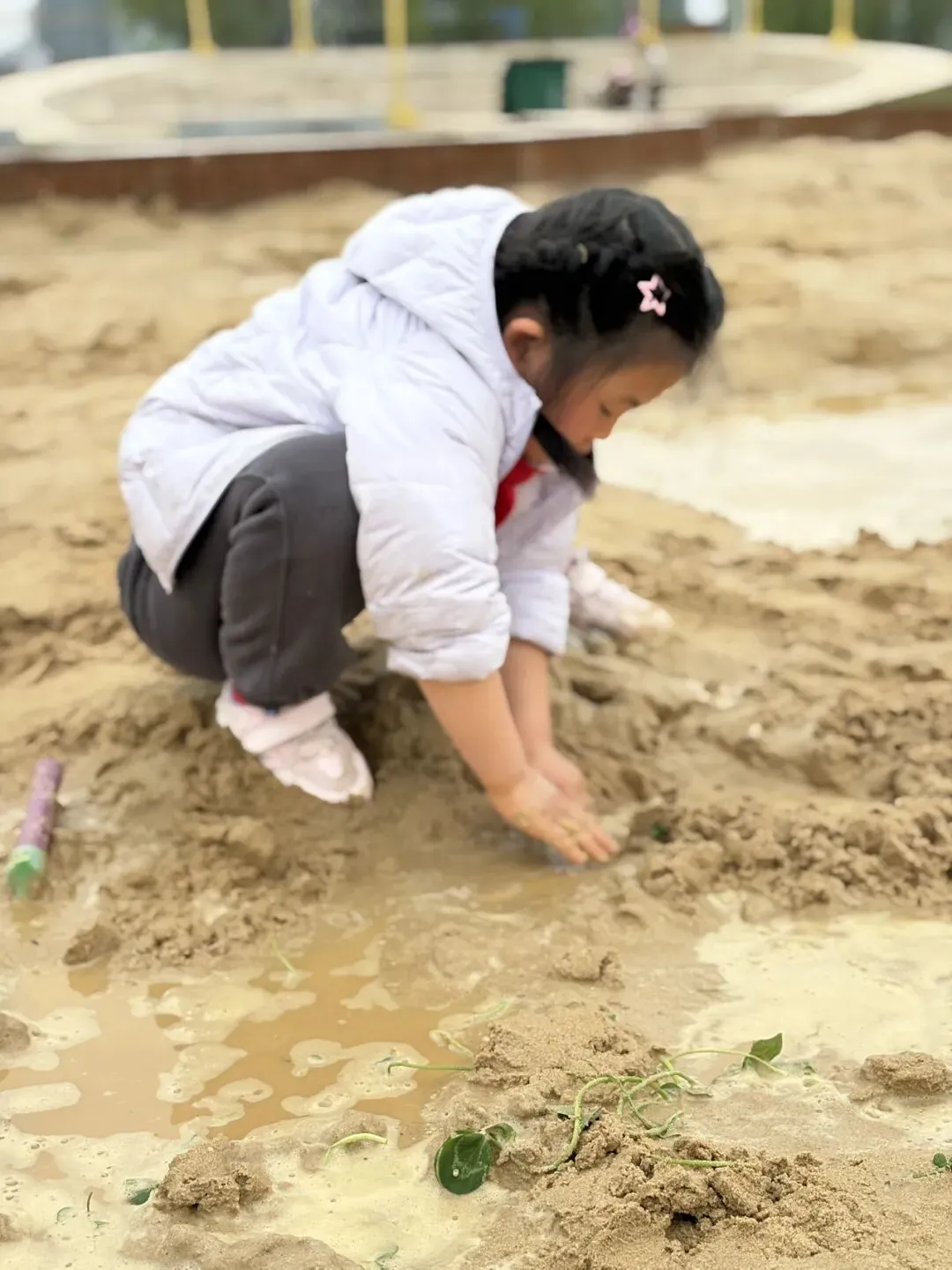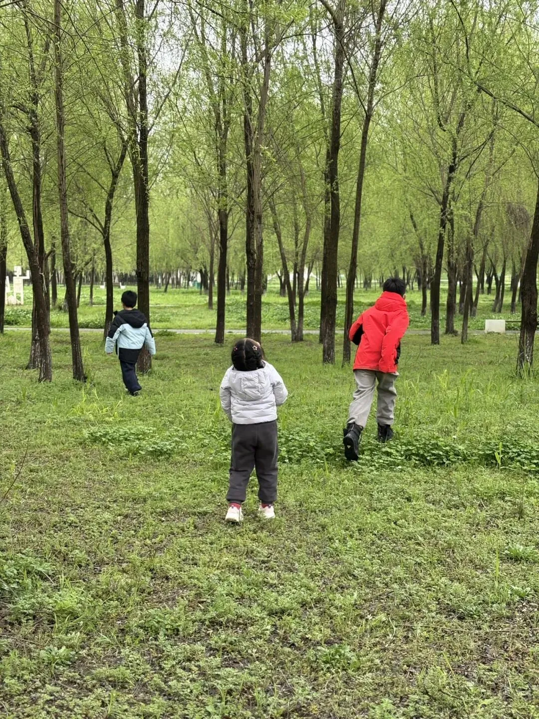 连日阴雨,路上偶遇几只慢悠悠的小蜗牛🐌,小朋友们最喜欢这些小生灵了。走进河边的小树林,小家伙们一头就钻了进去。轻轻摇晃树干,叶尖积攒的雨珠与纷飞的柳絮簌簌落下,惹得孩子们阵阵尖叫欢呼,即便沾了满身湿气,也依旧乐此不疲。游乐场里,碰碰车、跳楼机、炒豆子都是娃的最爱,一遍遍喊着“还要玩”。免费的沙池,更是从一岁到十岁的孩子都抗拒不了的快乐。最后又带着孩子们去了足球场,在草地上尽情奔跑、打滚,虽然草地还有点湿漉漉的,也丝毫挡不住这份撒野的欢喜。💡小提醒:
