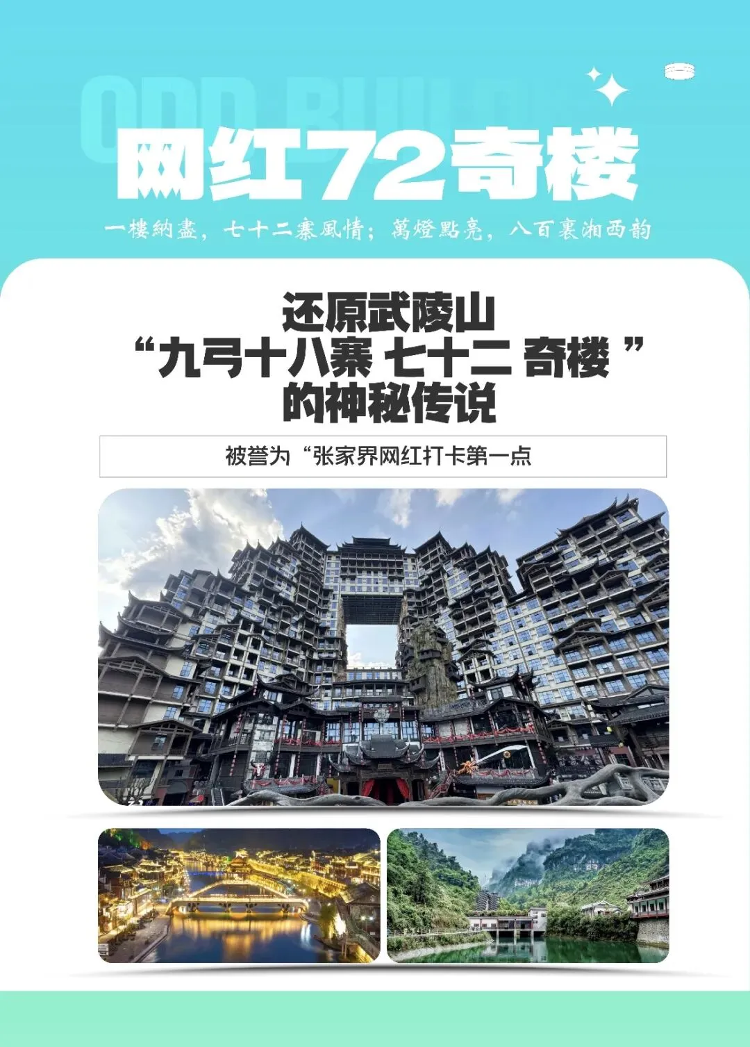 早餐后欣赏凤凰古城晨景,游凤凰古城【民俗步行街】:这条古街应证了千年厚重的历史文化沉淀,集休闲,娱乐,购物,民俗于一体,沿街有苗家扎染、蜡染、银饰、挑花、刺绣等多种多样的民间工艺品以及众多风味小吃,参观有代表性的苗族银器传承中心、熊氏蜡染铺、陈家老号姜糖、阿牛血粑鸭、吴花花的扎染铺、王春的“苗家小铺”等众多工艺美食店铺。乘车赴美丽的【湘西苗寨】(包含参观门票,无优无退):苗族民间文化底蕴丰厚,民风淳朴,文化艺术绚丽多彩,苗族民居、苗族服饰独具一格,尤以苗族跳鼓舞享誉海内外,1993年被湖南省文化厅授予“苗族花鼓之乡”; 乘车赴【张家界】,游览“武陵之魂”湘西神山【天门山】(包含门票):游览碧野瑶台、觅仙奇境、天门洞开景区,体验“云在脚下,奇峰尽览,万象目中”的豪迈感觉;观五大奇观,【天门索道】:索道线路斜长7455米,上、下站水平高差1279米,是世界最长的高山客运单线循环脱挂抱索器车厢式索道;【玻璃栈道】:这条看着就让人腿软的玻璃栈道给人带来的刺激震撼感;【通天大道】:被称为通天大道的盘山公路共计99弯,“天下第一公路奇观”横空出世,垂直高差达千米左右;【天门洞开】:九百九十九级台阶登上天门洞,是罕见的高海拔穿山溶洞;【鬼谷栈道】:栈道全长1600米,平均海拔为1400米,全线立于万丈悬崖的中间,给人以与悬崖共起伏同屈伸的感觉。后乘车赴天子小镇,入住山顶观云海日落浩瀚星空。后游览张家界旅游新名片-吉尼斯世界纪录最高吊脚楼-----【72奇楼】,指定时间集中晚餐,晚餐后继续游览。72奇楼以109.9米和奇楼灯光演艺秀为核心创意、以烟火老街、石头山寨三大板块,融合了酒吧街、作坊街、国际酒店、博物馆群等多种休闲业态于一体打造张家界首个夜生活都市小镇,选取具有湖湘特色的产品,打造“前店后坊”的作坊形式,游客可以全流程观看产品制作过程,甚至亲自体验产品制作过程,72奇楼在湘西大山深处寻找即将失传的民间美食家,让您回味儿时的味道,不断变换的奇异灯光秀,随手一拍就是大片,让您陶醉在这奇幻的灯光秀之中,也是湖南旅游龙头当之无愧的点睛之楼!后入住酒店休息或自由活动。