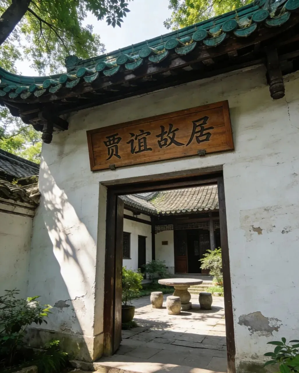 其实太平街不只有热辣的美食和热闹的店铺,走到巷子深处,还能看到一些安静的老宅子,青瓦白墙,木门上挂着铜环,墙根还长着几株小野草。有一栋宅子门口挂着“贾谊故居”的牌子,我走进去逛了逛,院子不大,却收拾得干干净净,有古井、有古宅,还有介绍贾谊生平的展板。看着那些老旧的家具和陈设,突然觉得特别感慨——千年前的文人在这里生活、创作,千百年后的我们还能走进这个院子,感受他的足迹,这种跨越时光的相遇,真的太奇妙了。