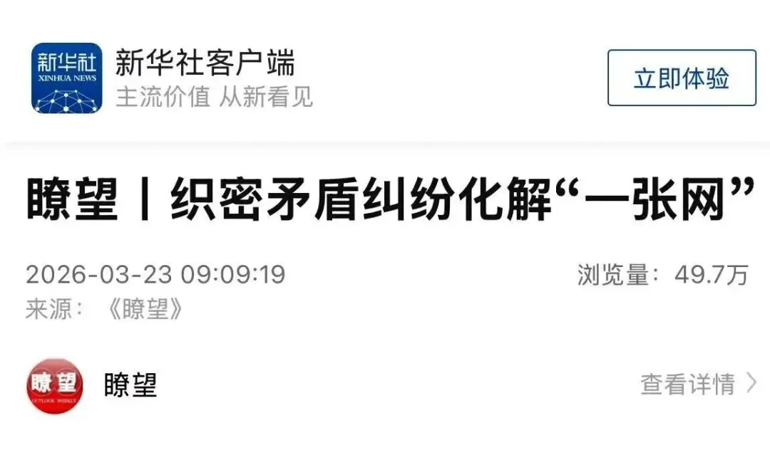 基层治理千头万绪,群众诉求千差万别。依托综治中心织密的解纷“一张网”,各地正在将分散的治理资源汇聚在“一站式”窗口,让单一部门的专科“问诊”升级为多方协同的综合“会诊”,促风险预警跑在矛盾发生之前“治未病”,持续提升治理精度、温度,守住民心所盼的安全感,为建设更高水平平安中国写下生动注脚。