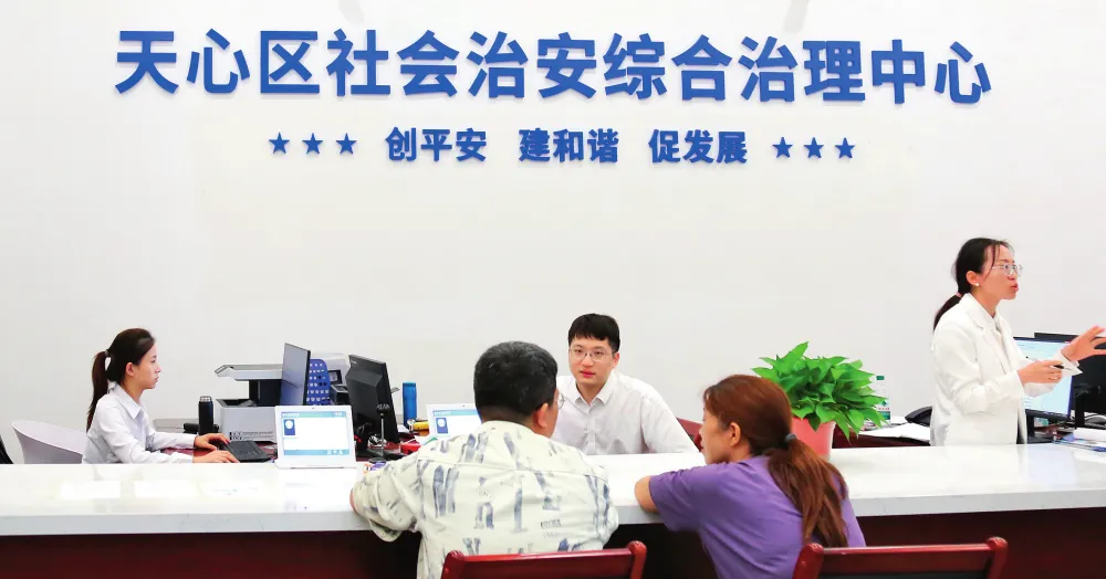 “综治中心通常选址在临街靠路、交通便利、辐射能力强的地方,方便群众办事;各职能部门同驻一楼,集中设立综合接待、劳动争议仲裁、法律援助、诉讼服务等功能窗口。综治中心受理矛盾纠纷后,即可在内部高效流转、匹配资源。”褚宸舸说,通过部门协同替代群众多头奔波,将外部社会成本转化为内部行政运行成本,将治理优势转化为群众可感知的安全感,筑牢基层治理防线。