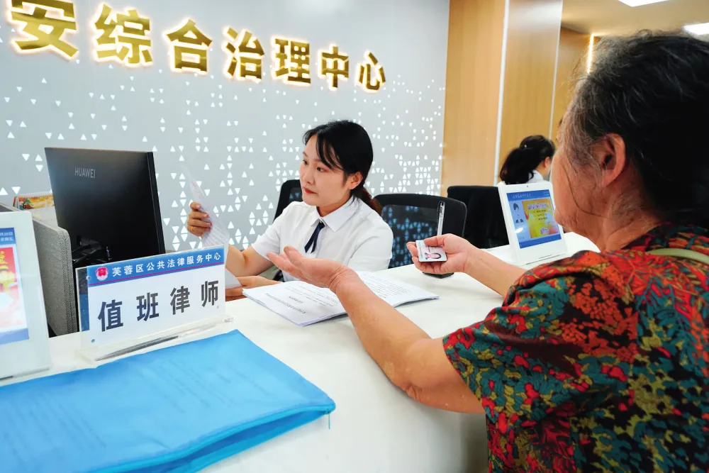 长沙市芙蓉区综治中心入驻的法律援助律师为来访群众提供法律咨询 (2025年9月12日摄)尹昊天摄